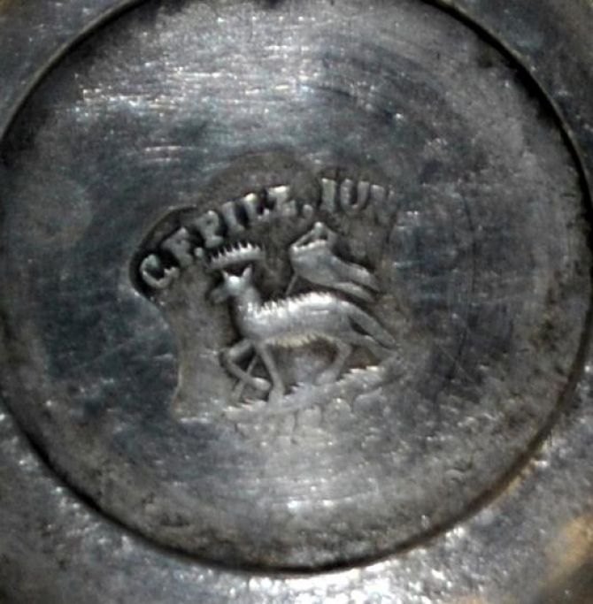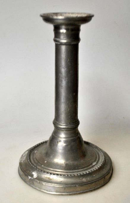 Empire lysestage i tin, 19. årh. Stemplet: C. F. Pilz, jun. H.: 17 cm.