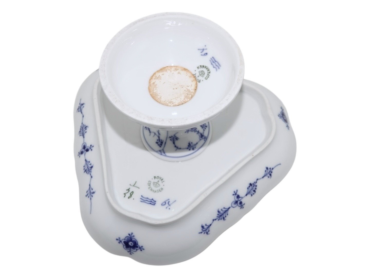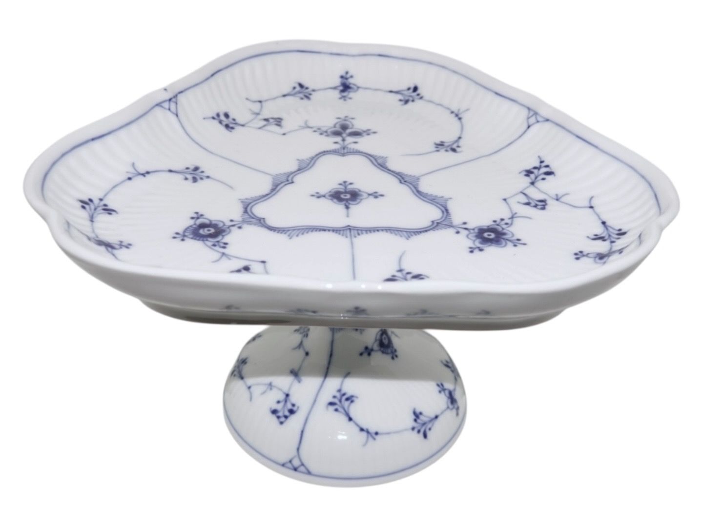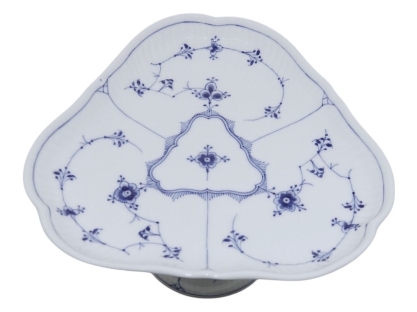 Royal Copenhagen Musselmalet Riflet, sjælden set trekantet kageopsats på fod.
