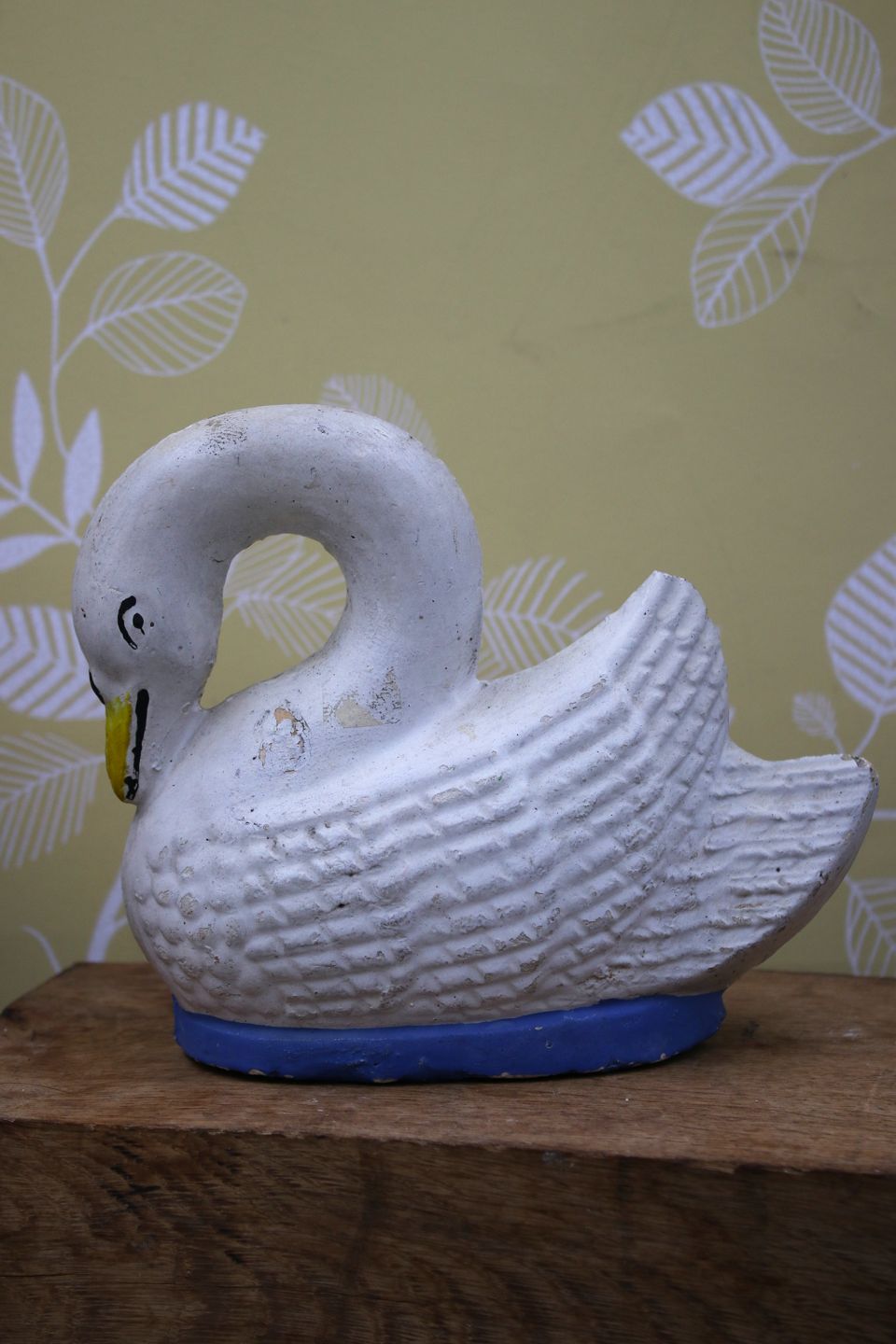 Dekorativ , gammel svane i sandsten med gammel bemaling og en fin patina...