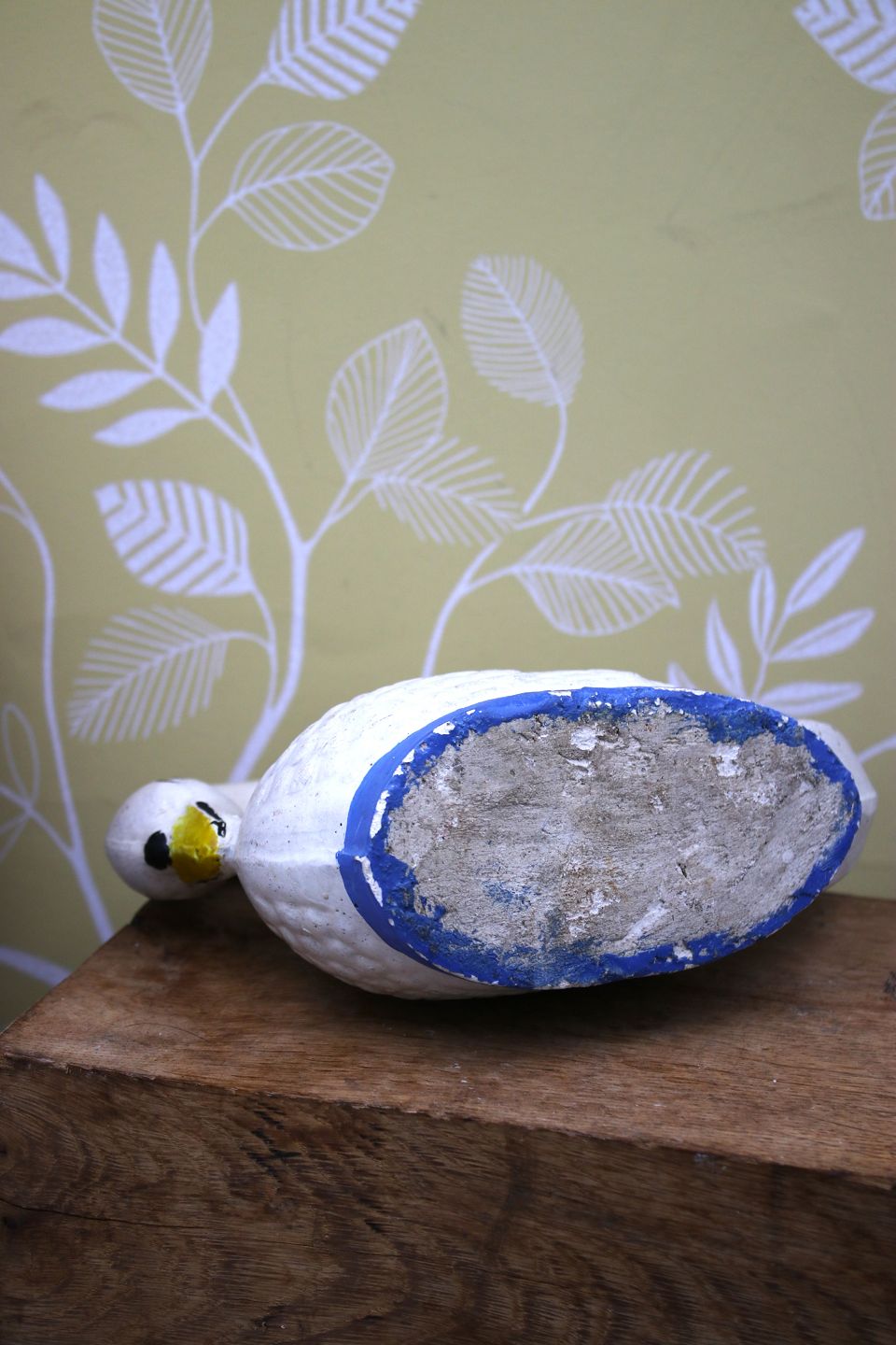 Dekorativ , gammel svane i sandsten med gammel bemaling og en fin patina. H: 14,5cm. L: 18,5cm. B:8cm.