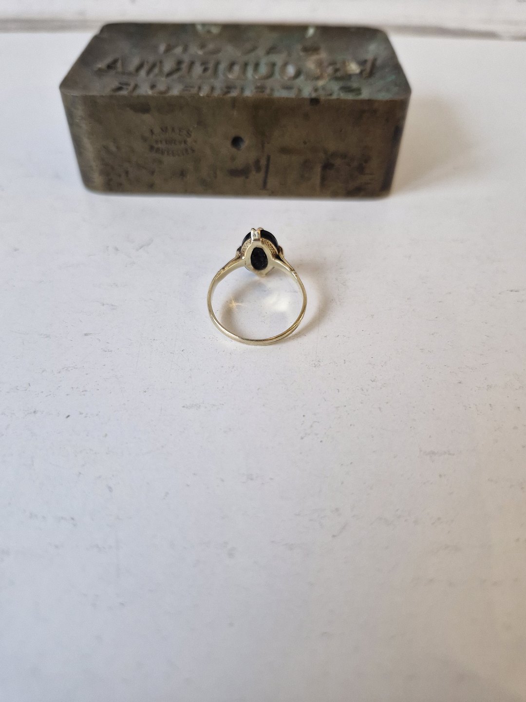 Smuk gammel ring i 14 kt. guld med oval onyx prydet med gammel slebet diamant
