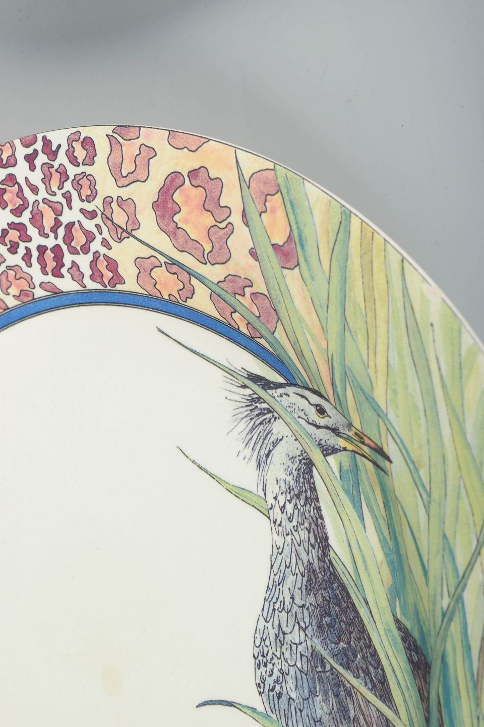 Tre dekorative fajancetallerkener fra Gien i det karakteristiske “Savane”-mønster med farverig bort og naturalistisk motiv. Et smukt, velbevaret sæt.