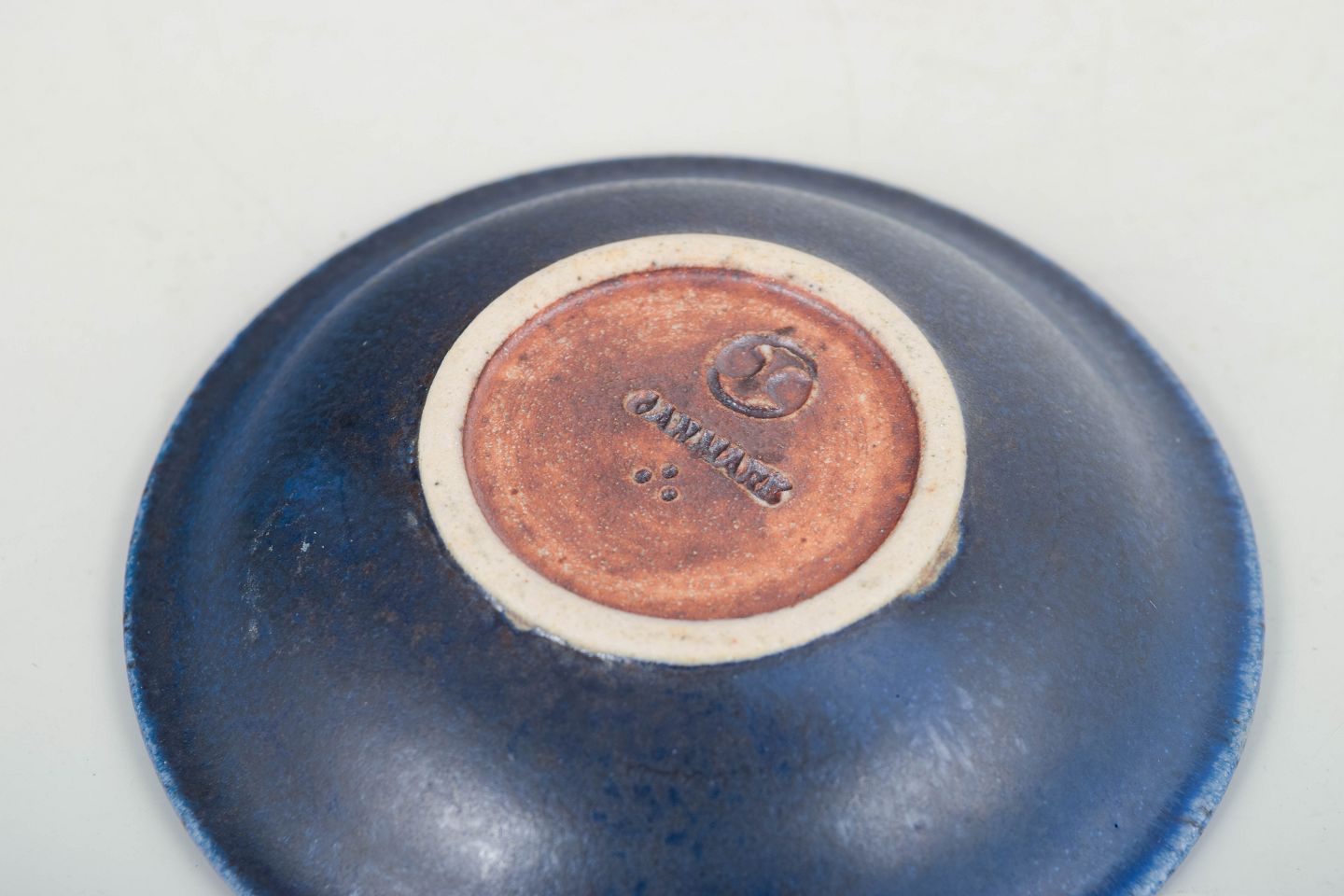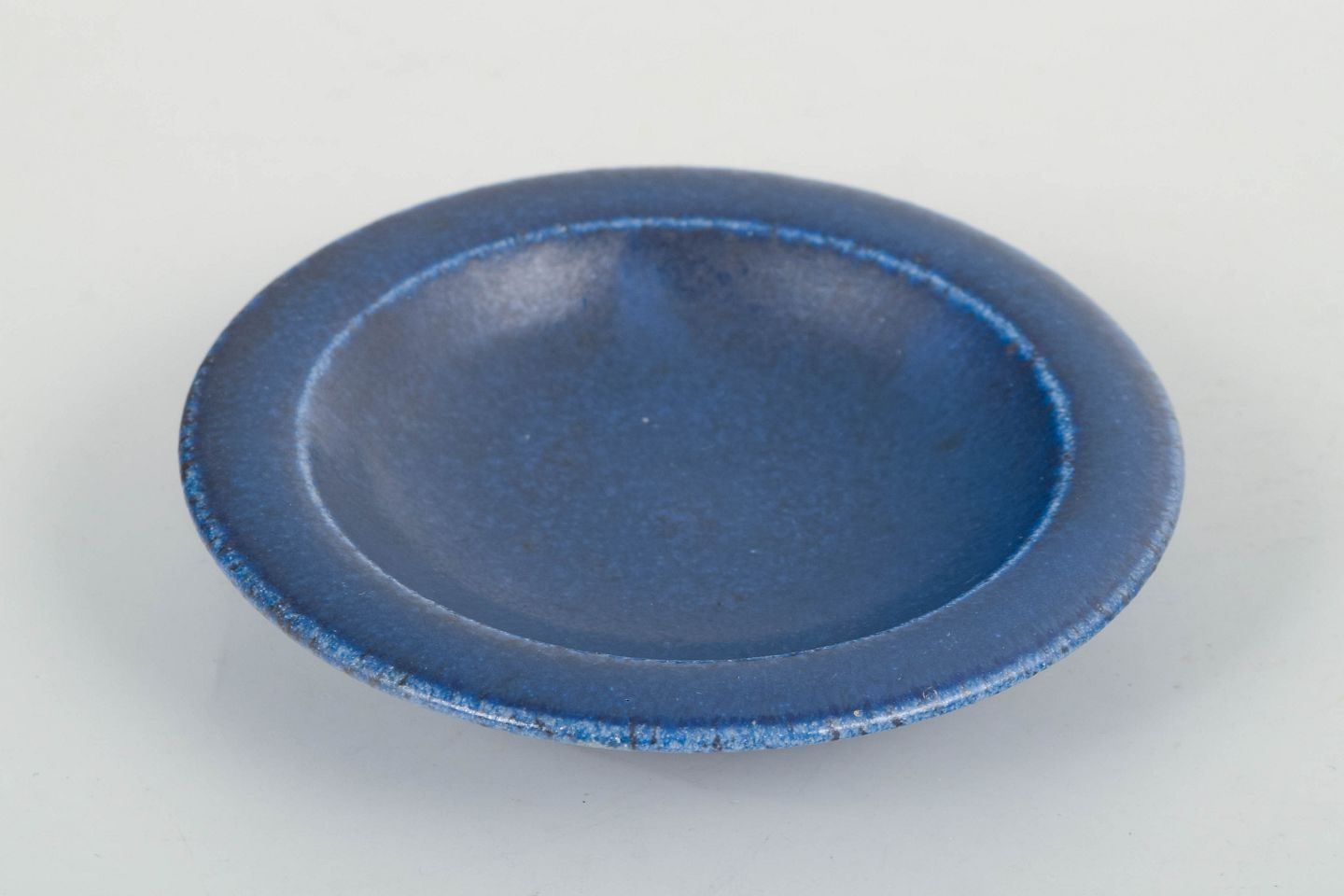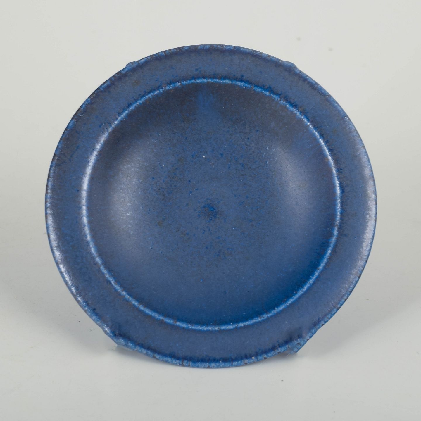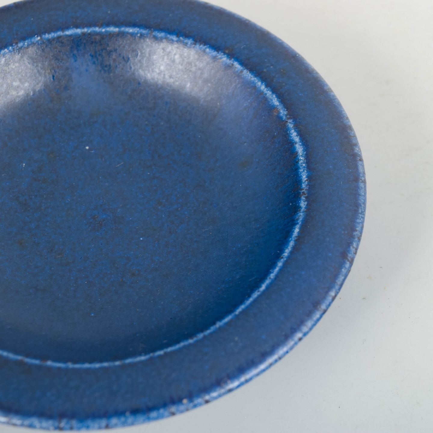 Lille stentøjsfad i karakteristisk Saxbo-glasur i dyb blå tone. En enkel, raffineret form med den klassiske matte overflade, som kendetegner Saxbos højbrændte stentøj.