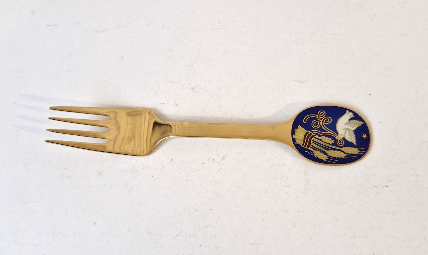 A.Michelsen julegaffel i forgyldt sterlingsølv og emalje fra 1985