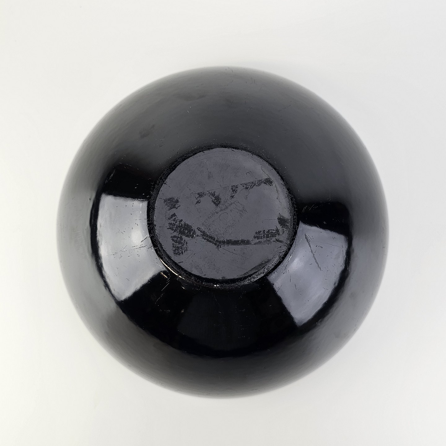 Krenit skål af sort metal med sort emalje indvendigt og udvendigt