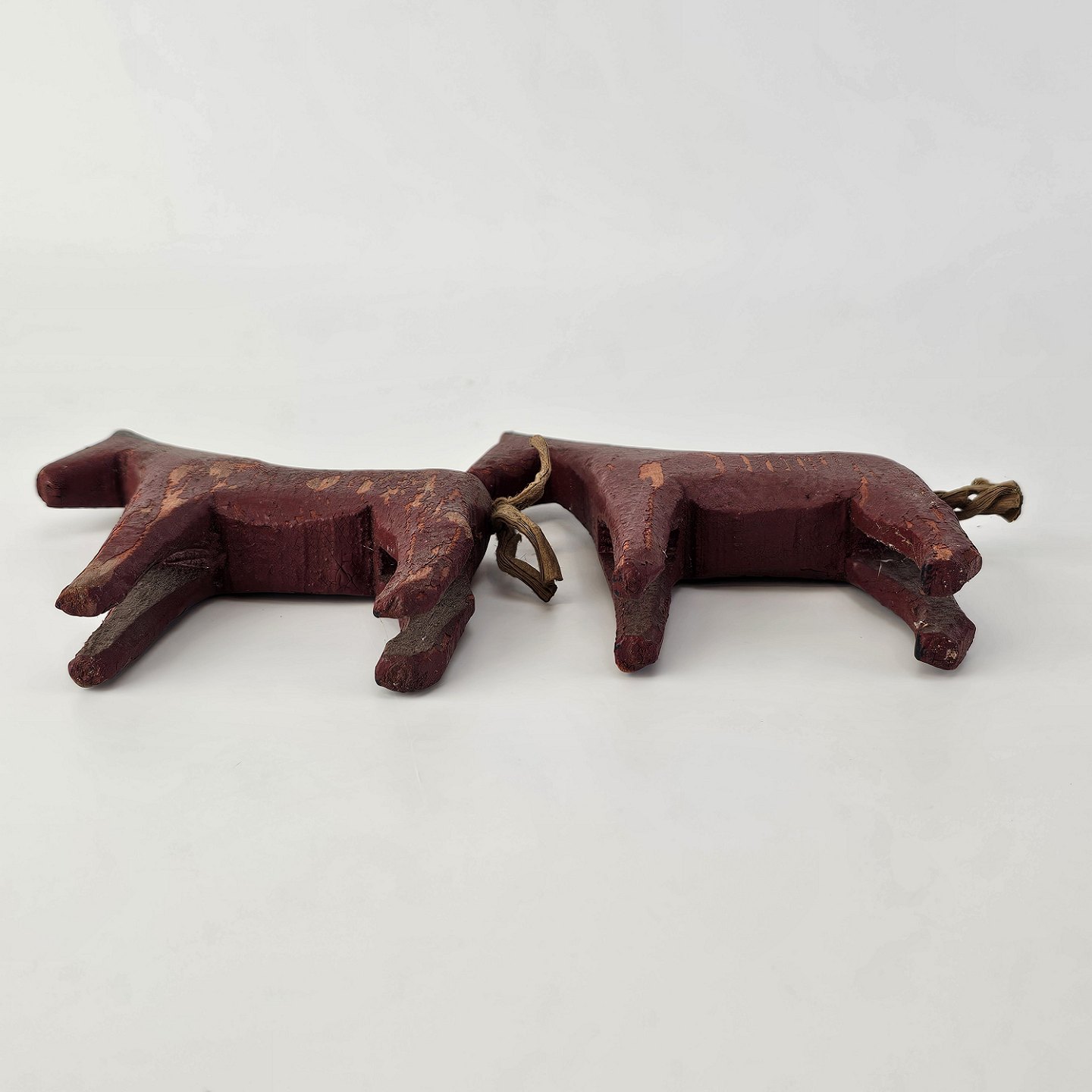 Figurer i malet træ med motiv af heste, formentlig fremstillet som fængselsarbejde