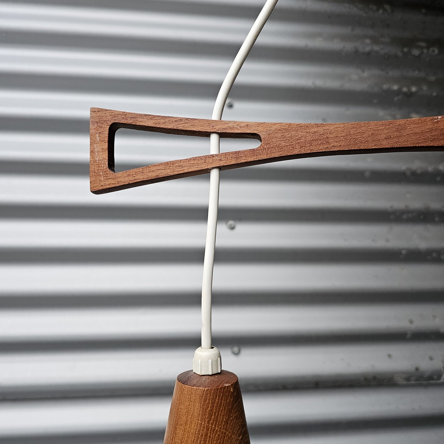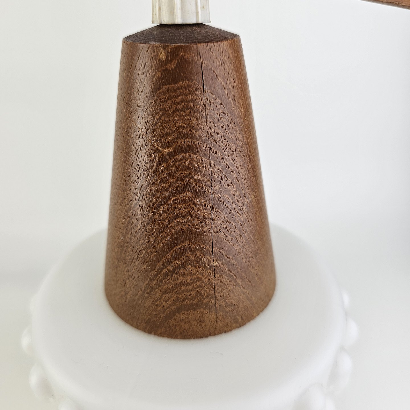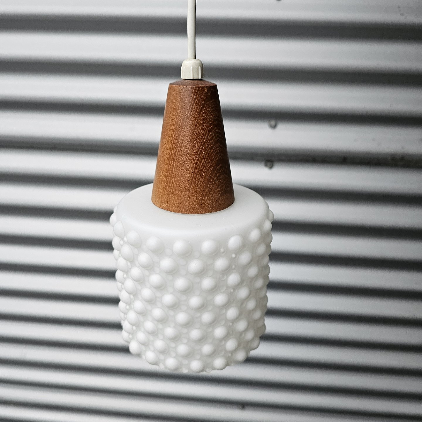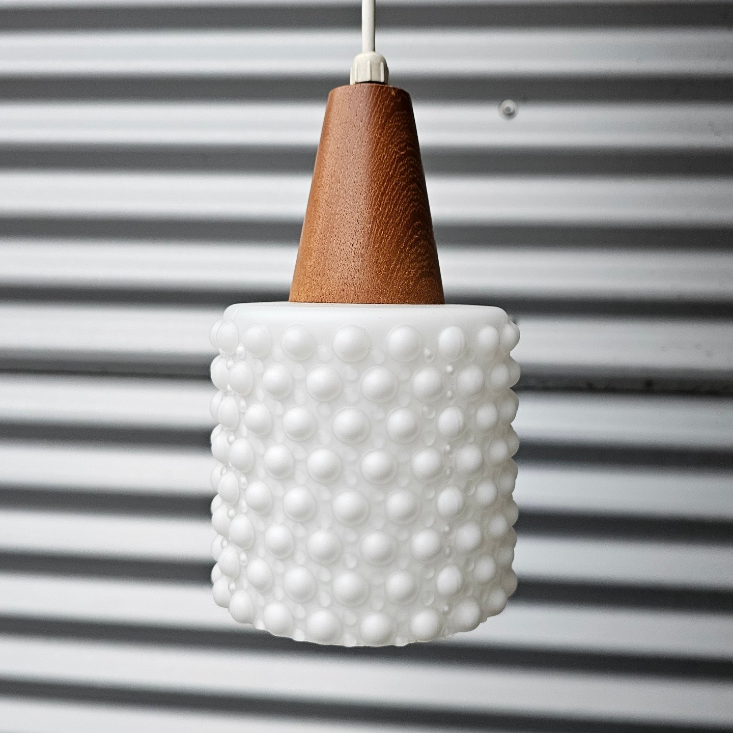 Pendel med ophæng i teak træ og skærme af hvidt opalglas