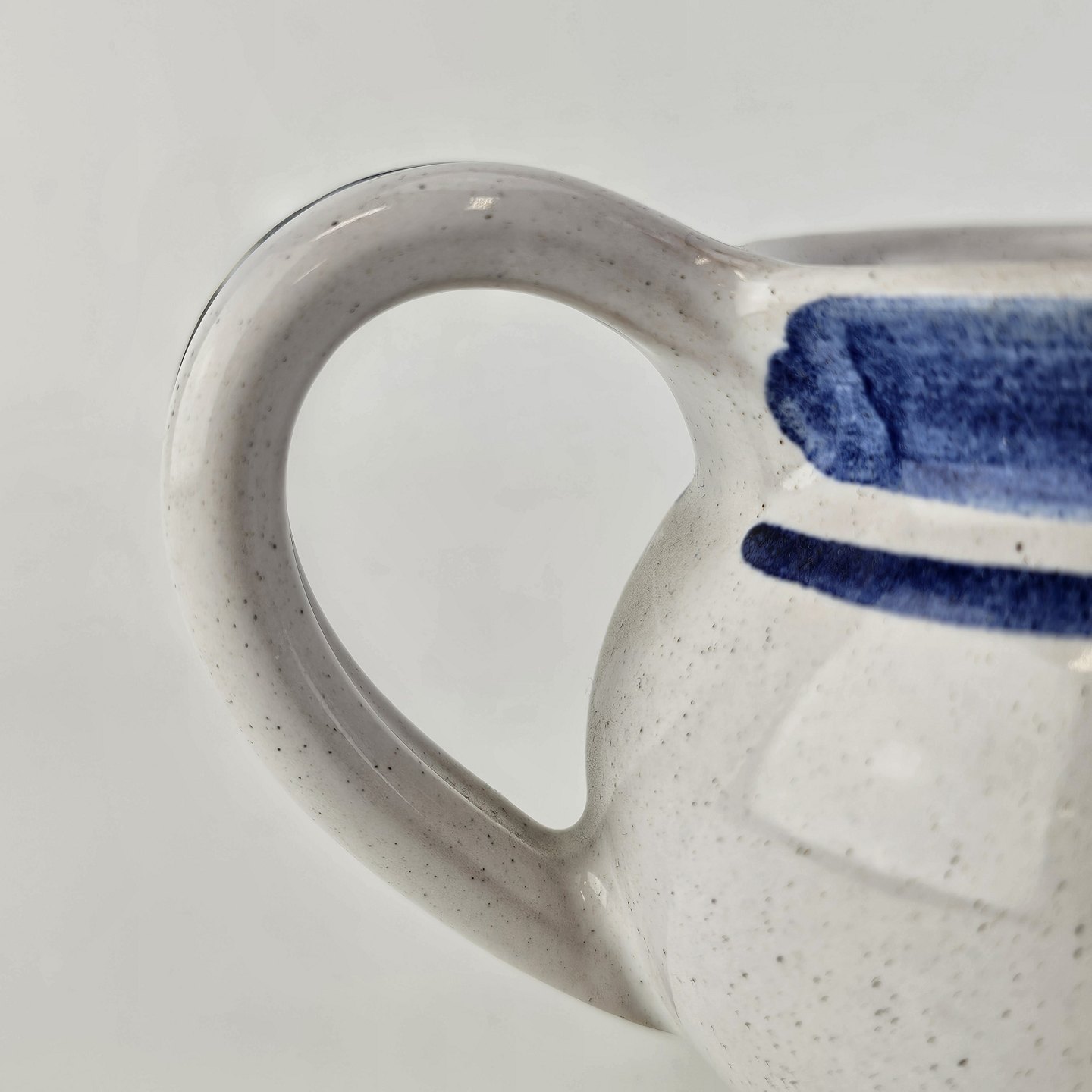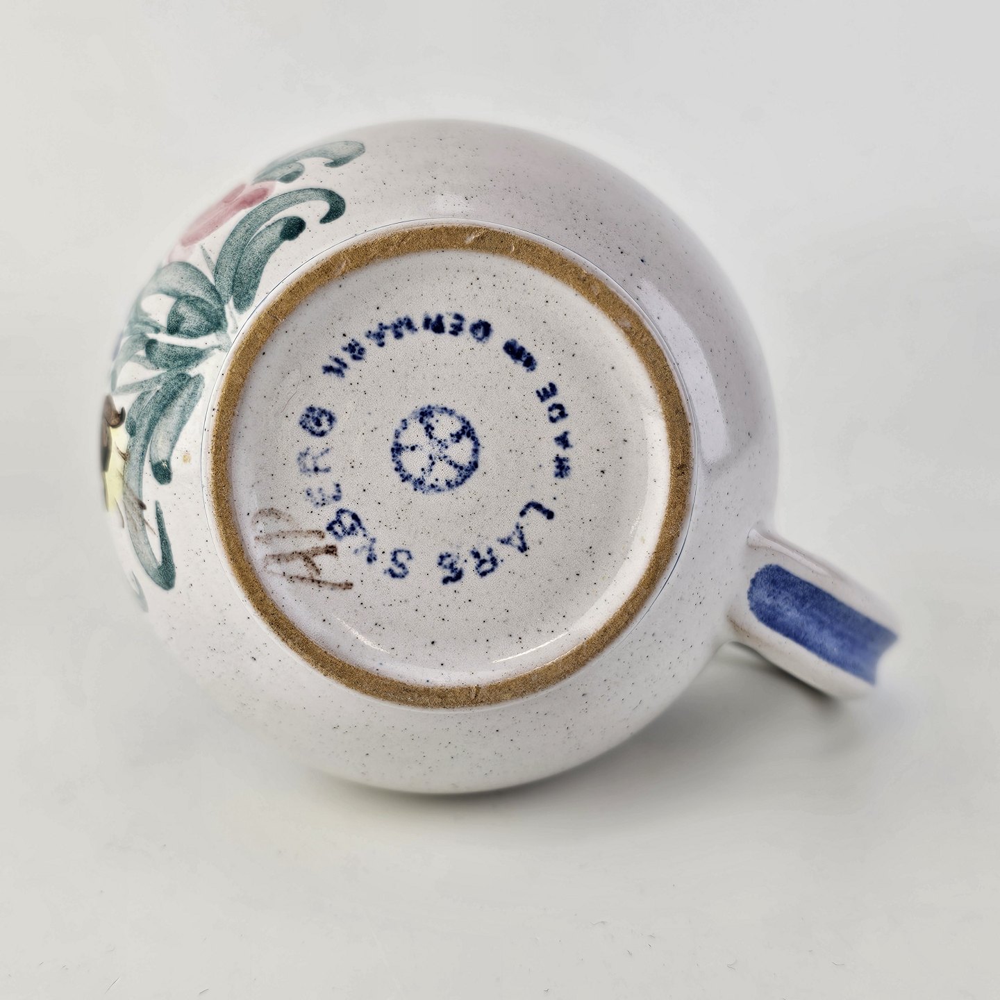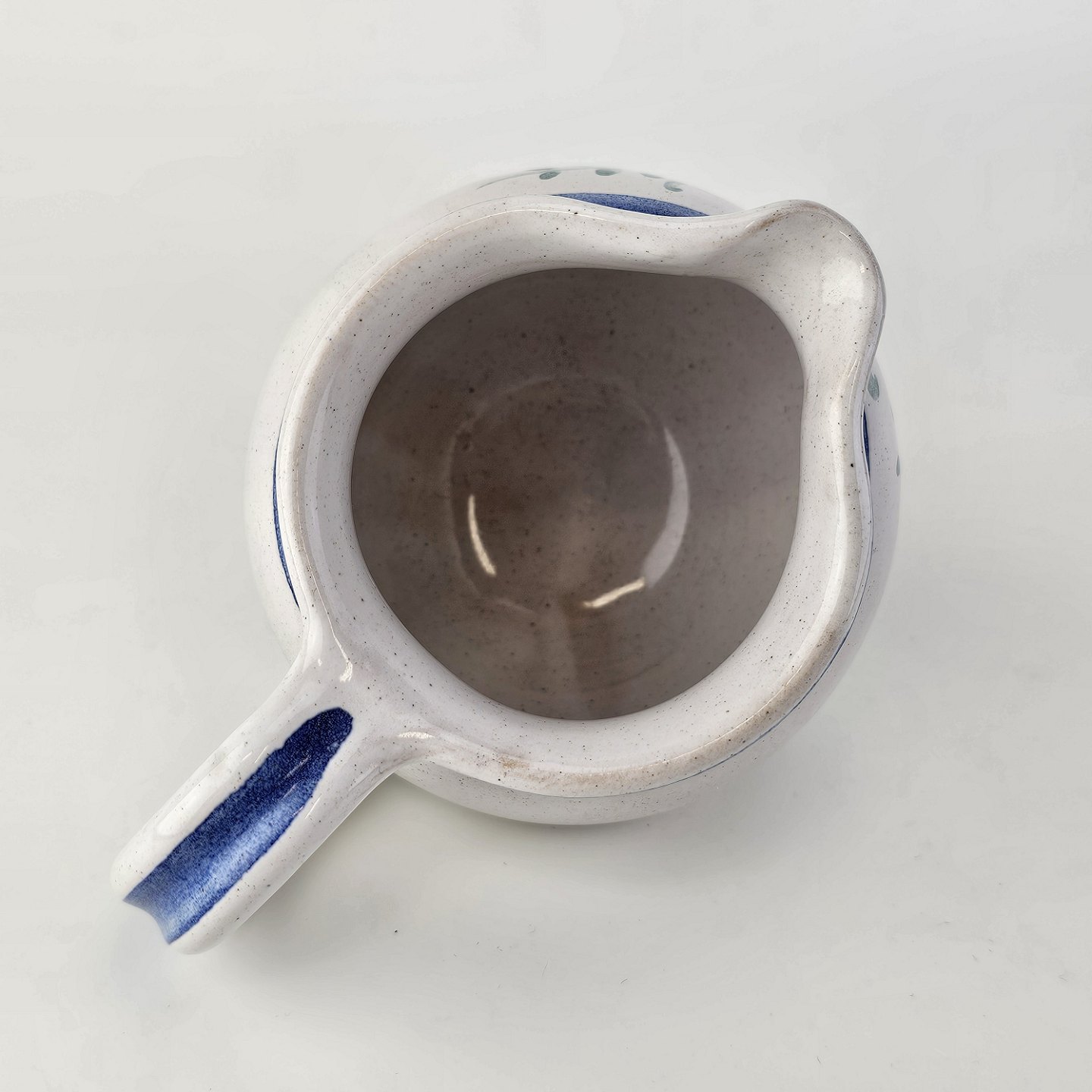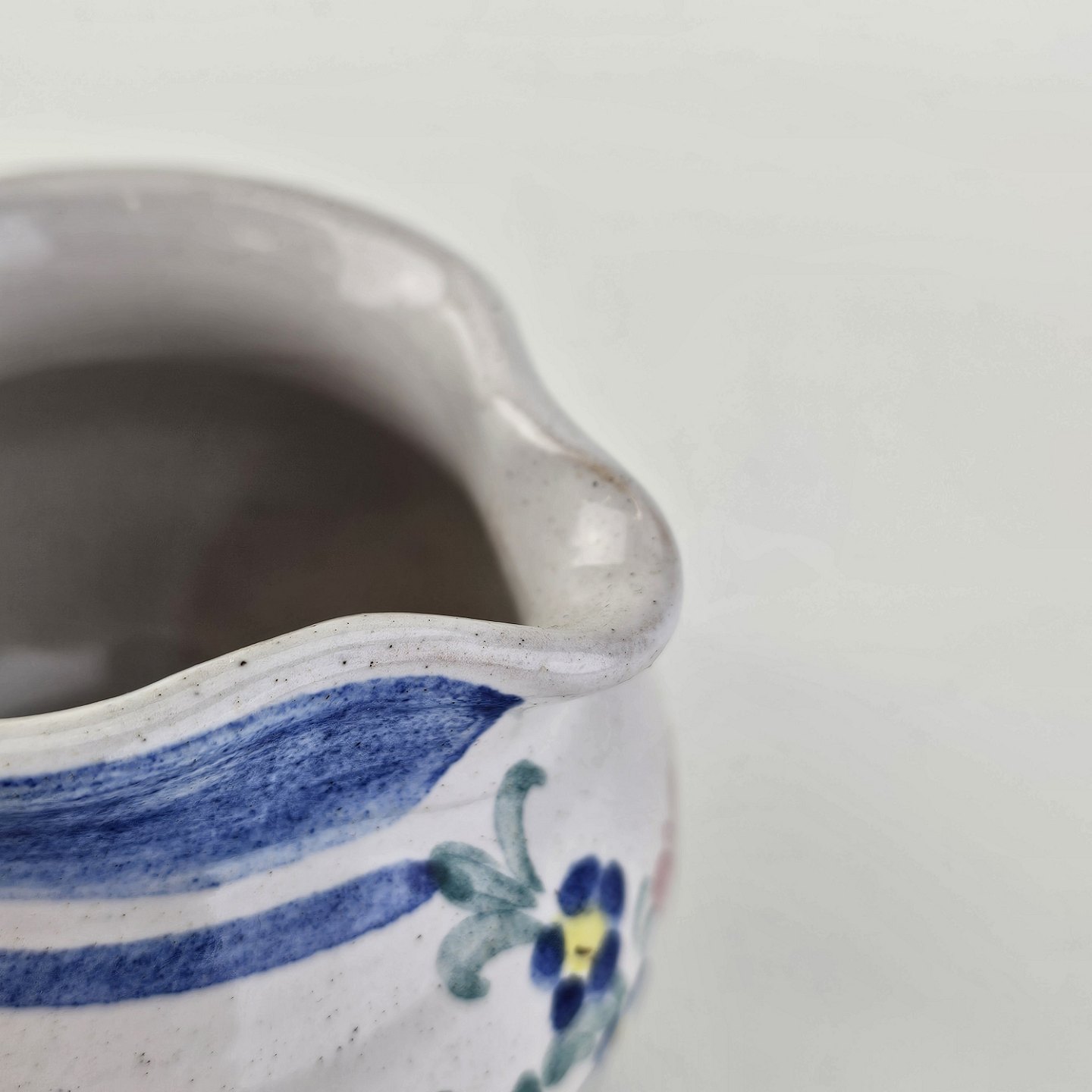 Flødekande i keramik med blå detaljer og blomsterdekoration