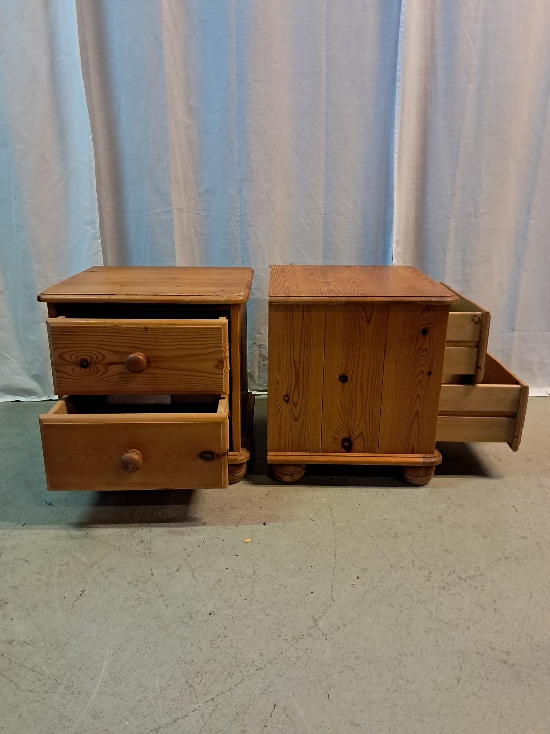 2 Små kommoder i massivt fyrretræ, fra 1980erne.