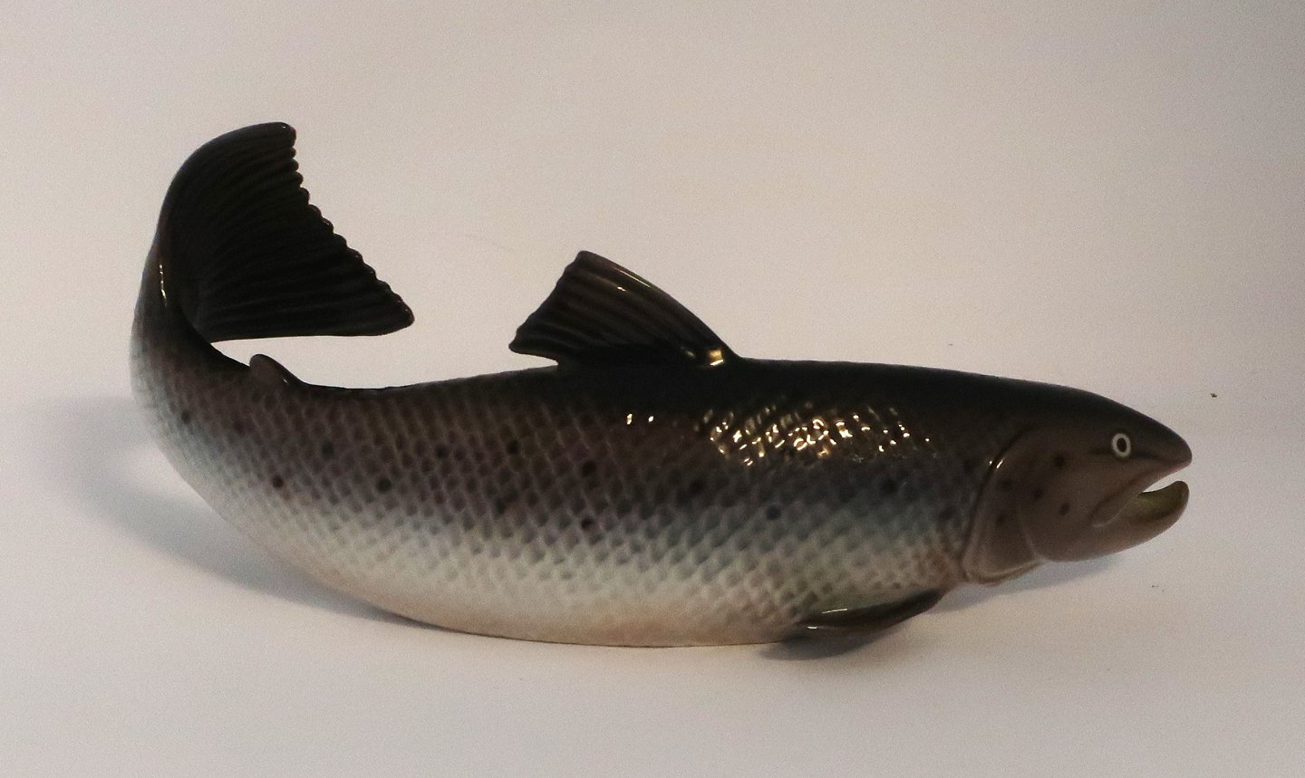 Bing & Grøndahl. Porcelænsfigur. Laks. Model 2366. Længde 22 cm. (1 sortering)