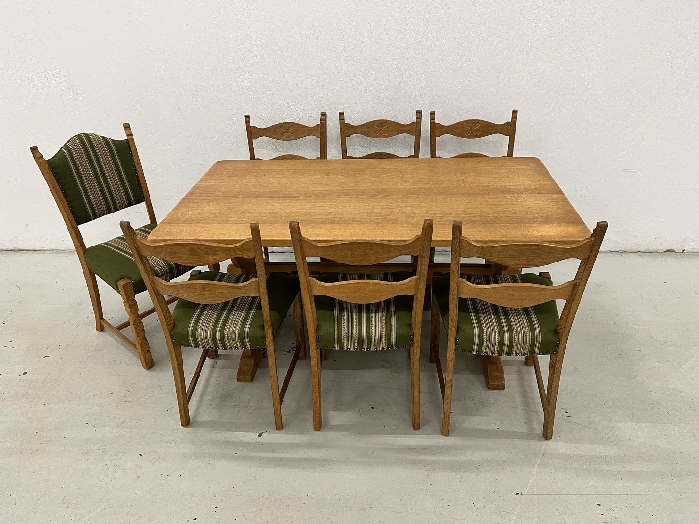 Klassisk spisebordssæt i massiv eg af Henry/Henning Kjærnulf