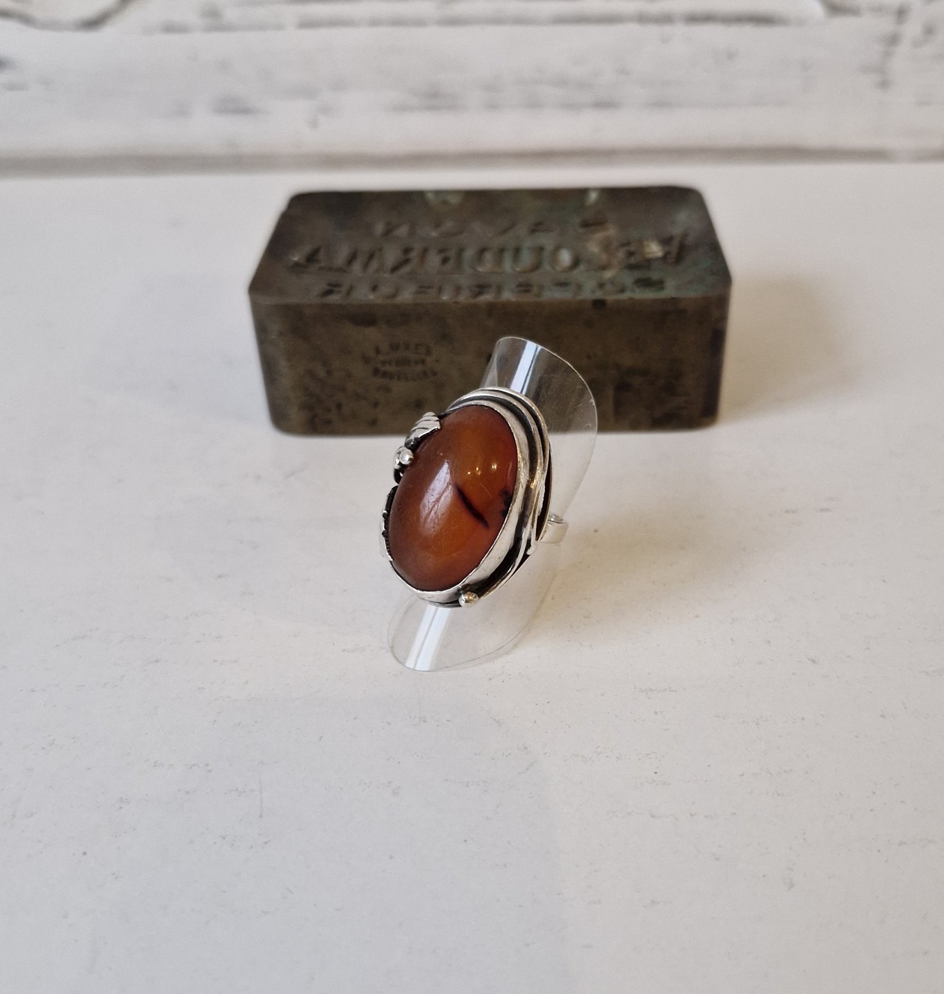 Smuk sølvring med rav