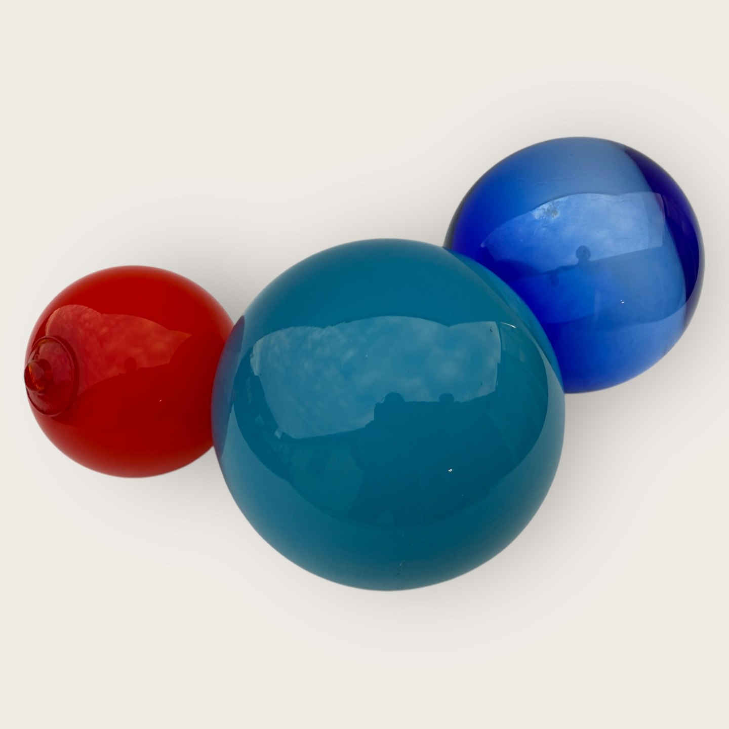 Blå glas kugle til ophæng eller til brug sammen med Carnaby / Otto Bauer vaser, muligvis fremstillet på Holmegaard, Ca. 11 cm i diameter *Pæn brugt stand*