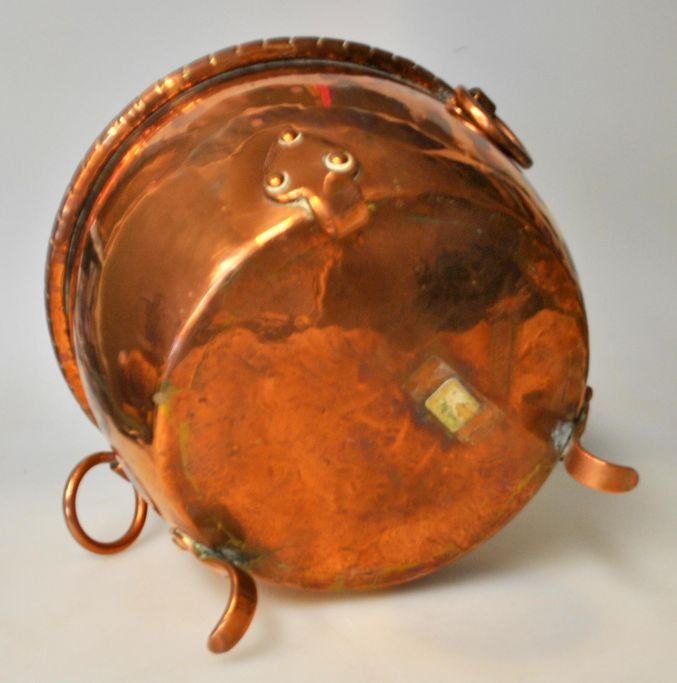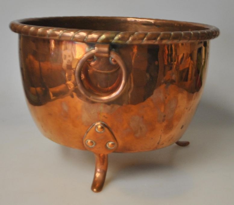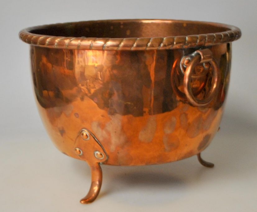 Copper flower pot on three legs, 19th century. Denmark. With two handles. H.: 15 cm. Dia.: 21 cm.
