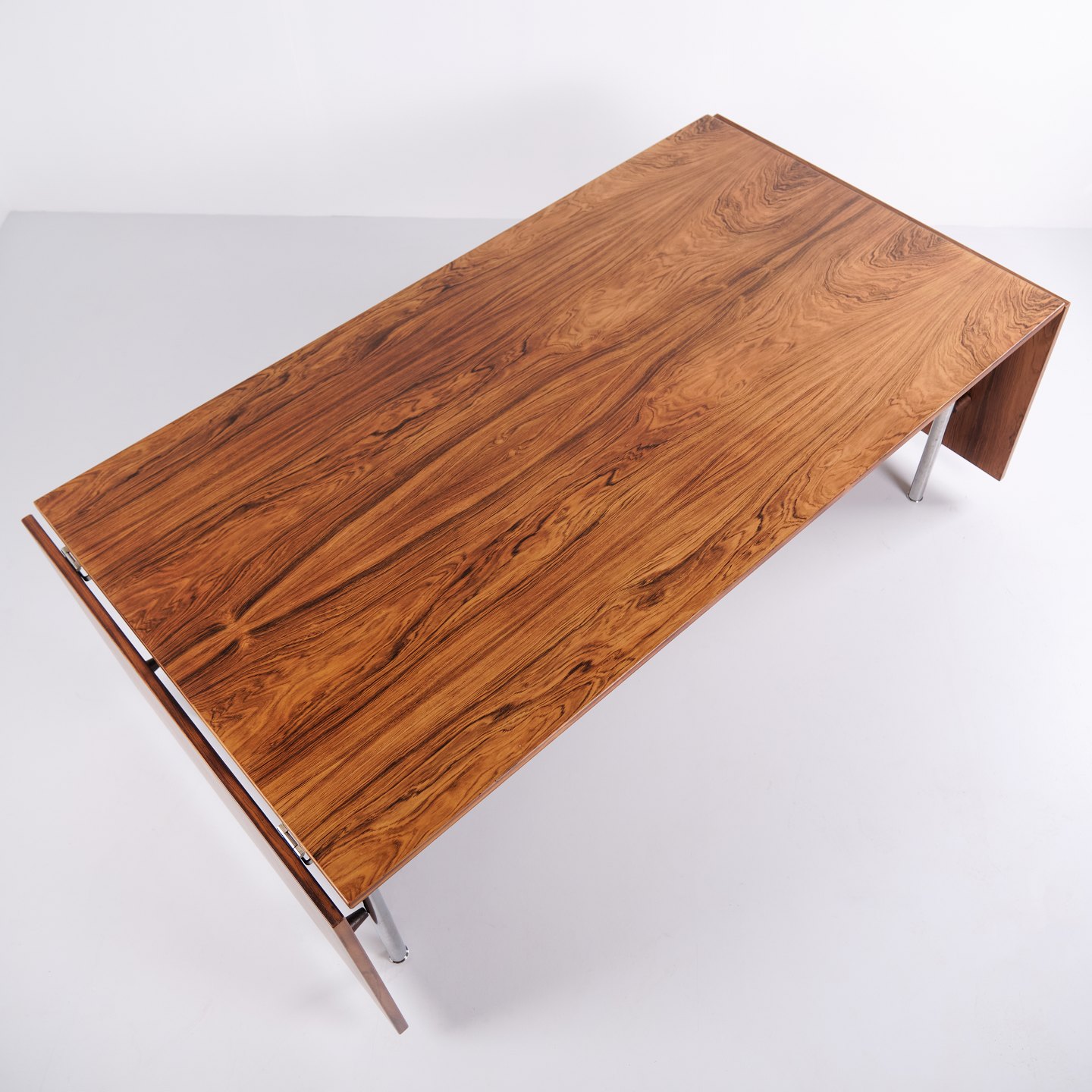 Spisebord model AT 319 af Hans J. Wegner for Andreas Tuck. Riopalisander med stålben og 2 tillægsplader. Dansk design fra 1960’erne.