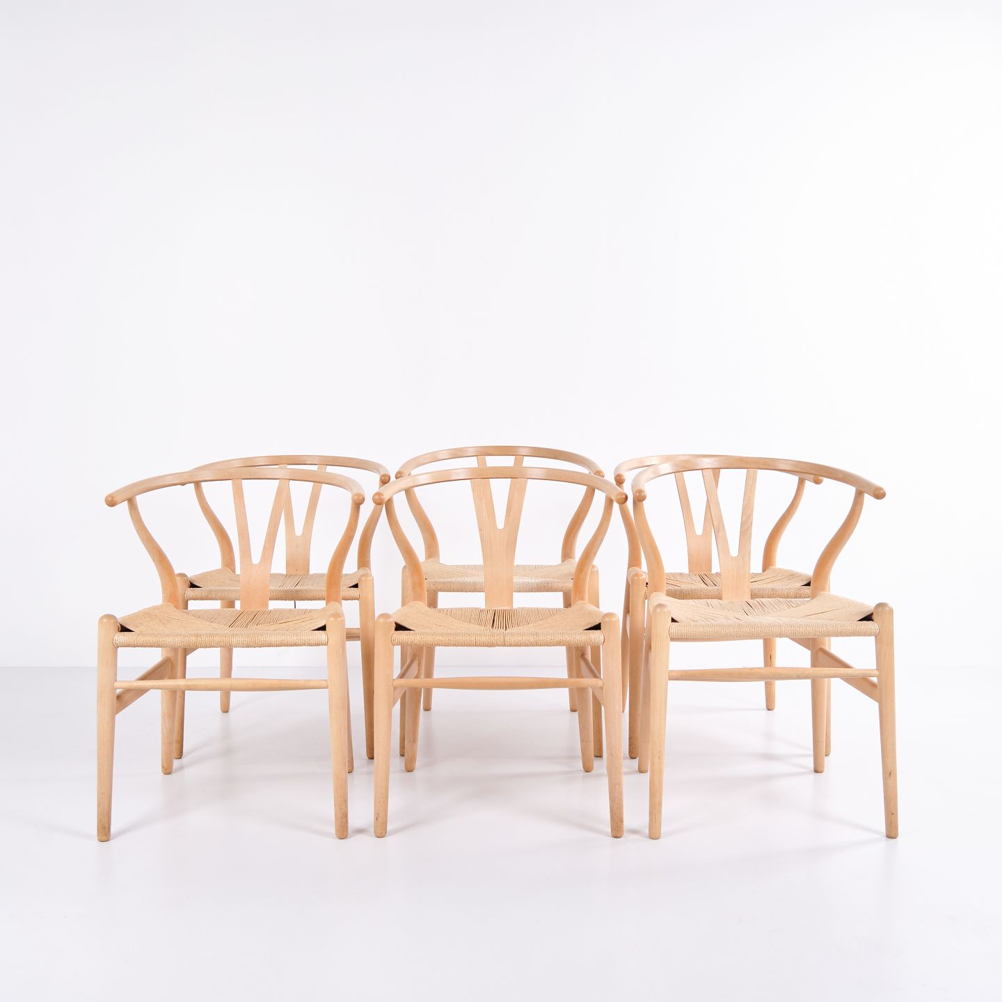 Sæt Af Seks Y-stole - Model Ch24 - Bøg & Naturflet - Hans J. Wegner - Carl Hansen & Søn - 1970erne