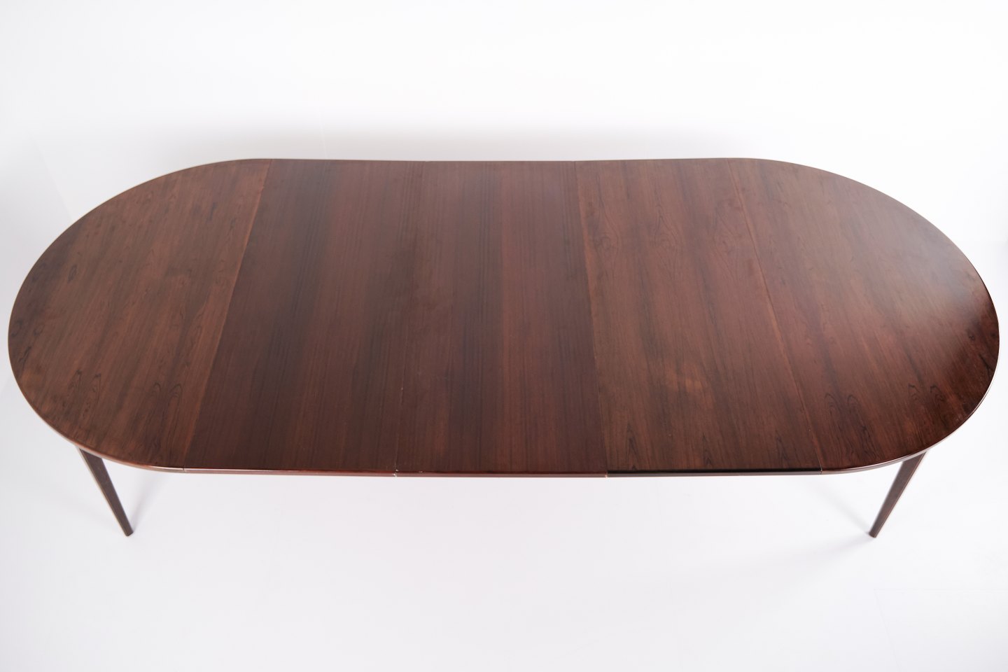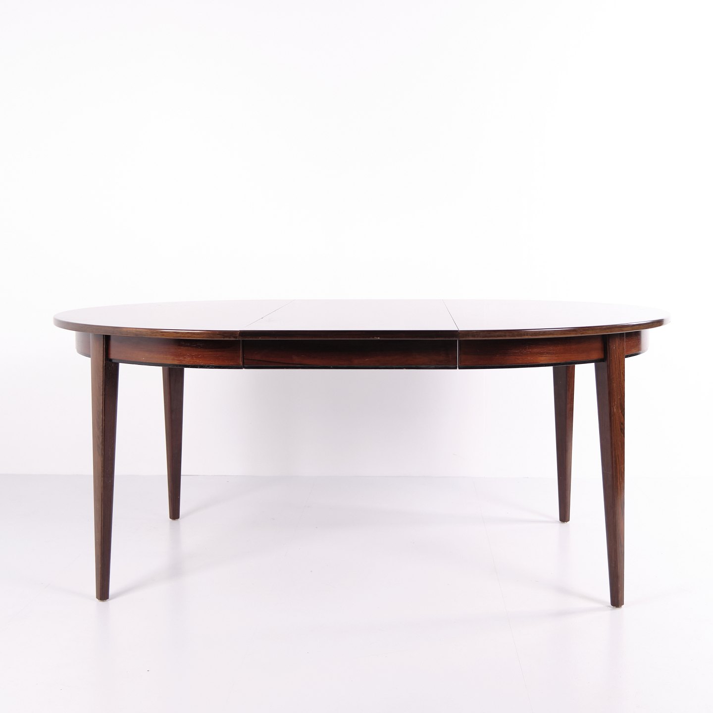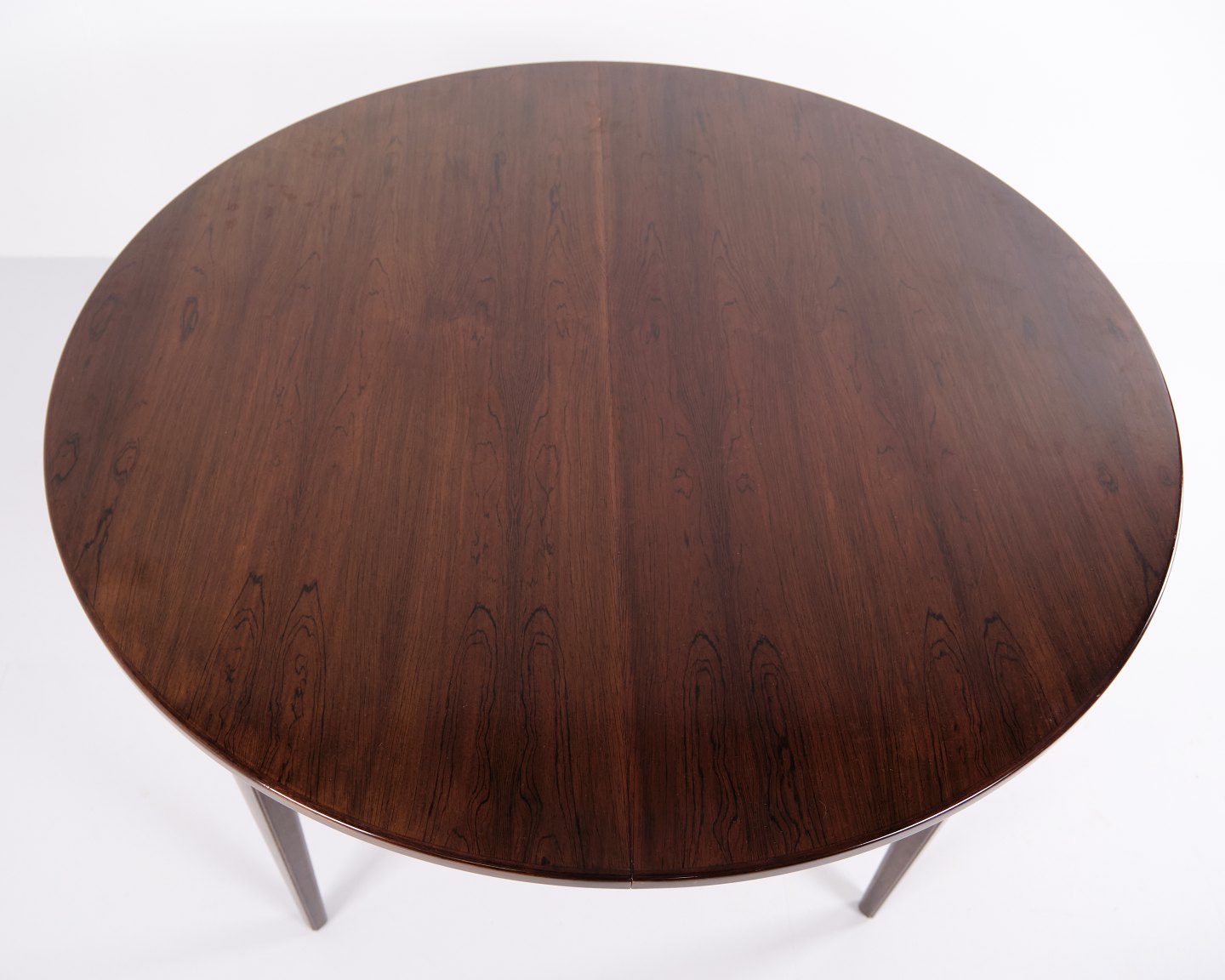 Rundt spisebord model 55 i palisander, designet af Gunni Omann for Omann Jun Møbelfabrik. Med 3 tillægsplader. Dansk design fra 1960’erne.