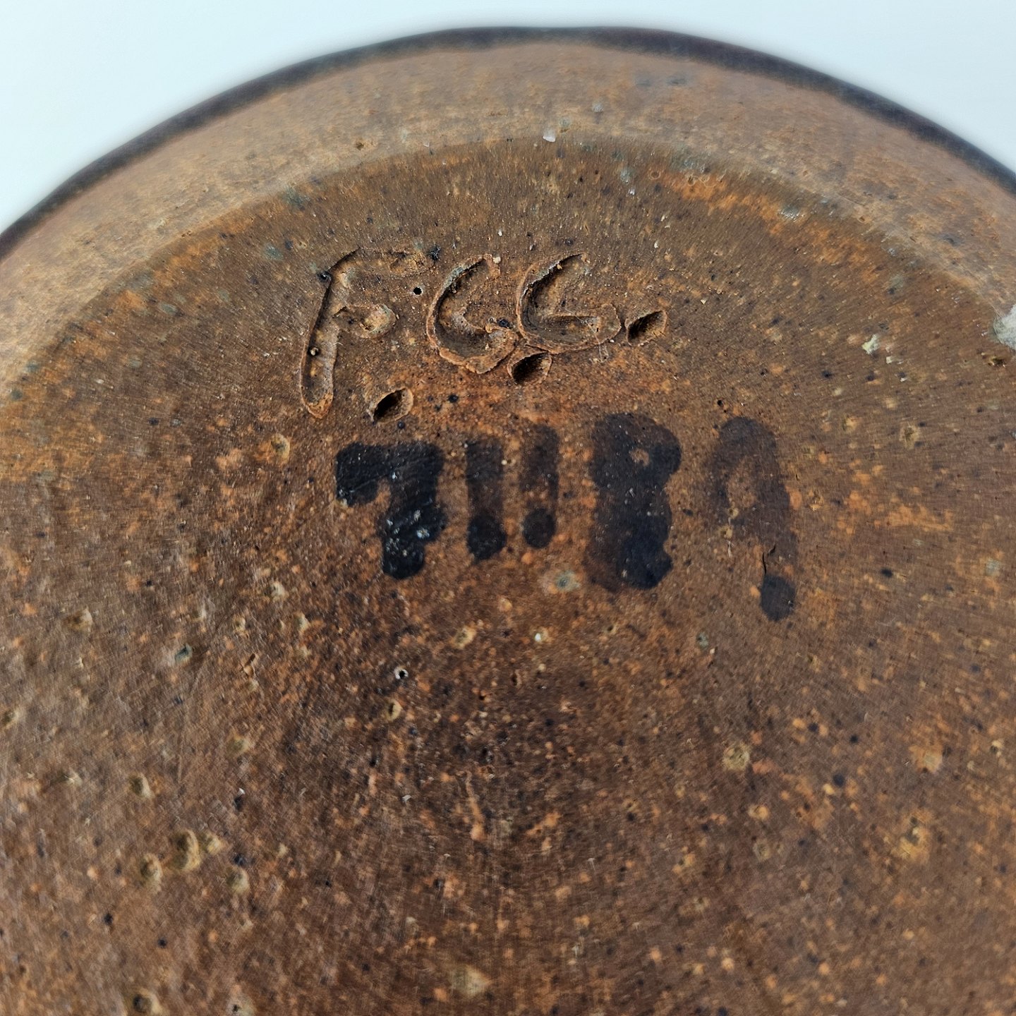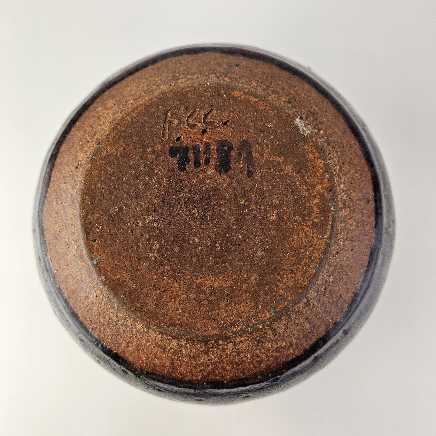 Stentøj skål i sort og grøn glasur, indeni rødlig glasur.
