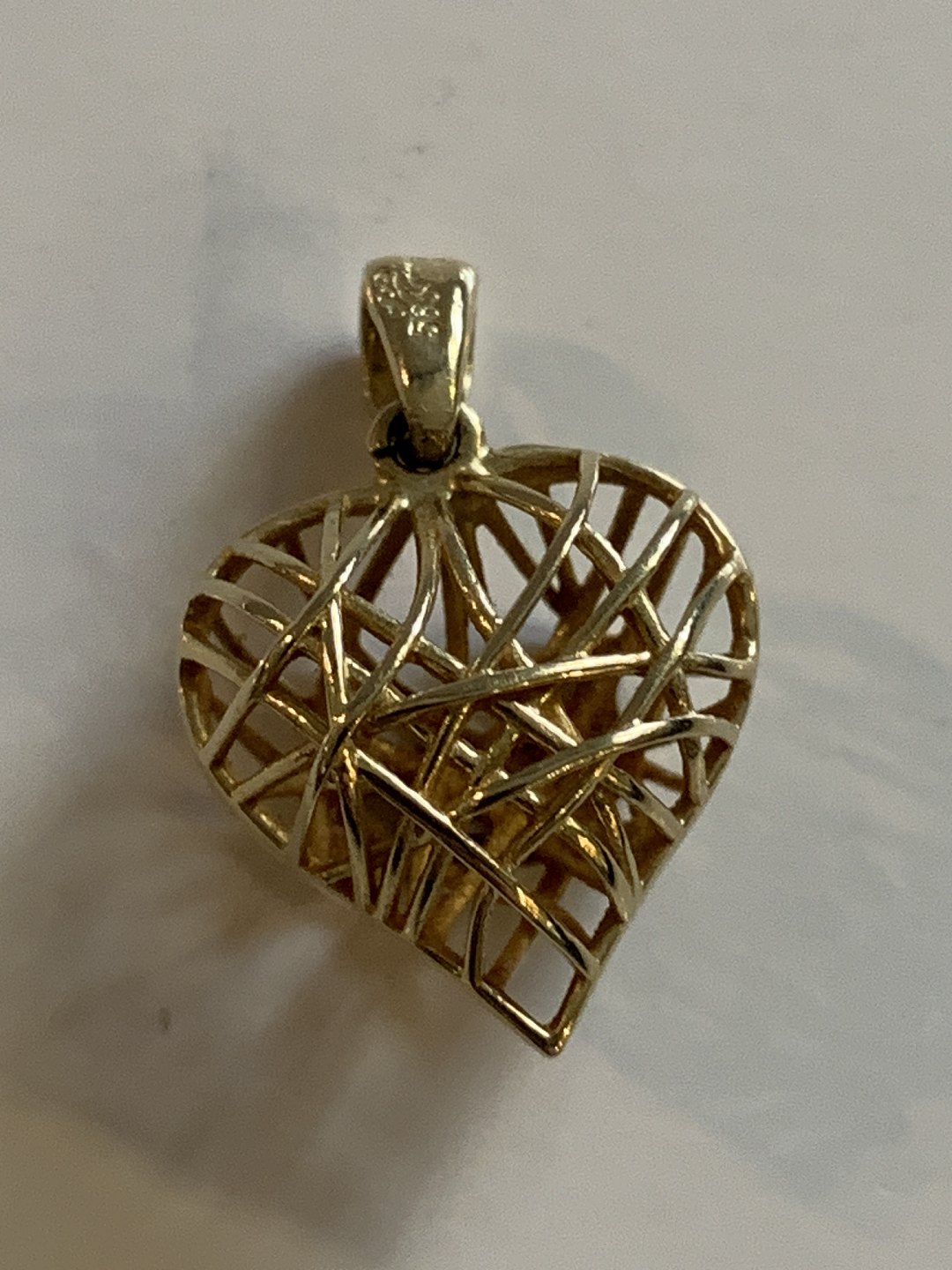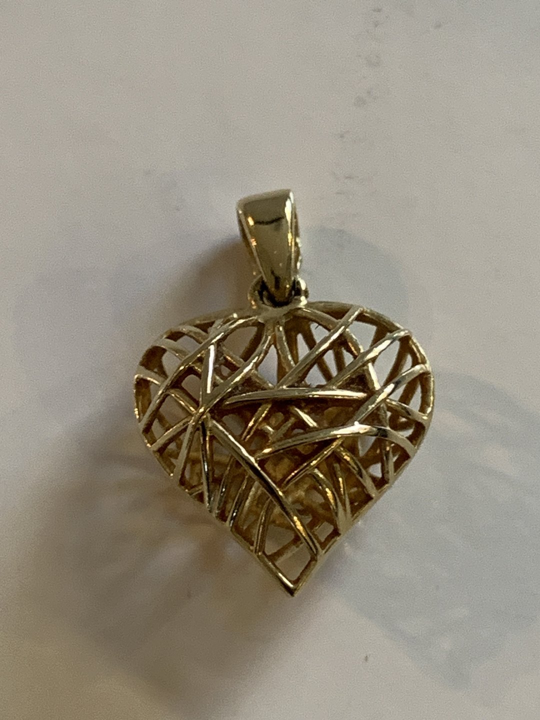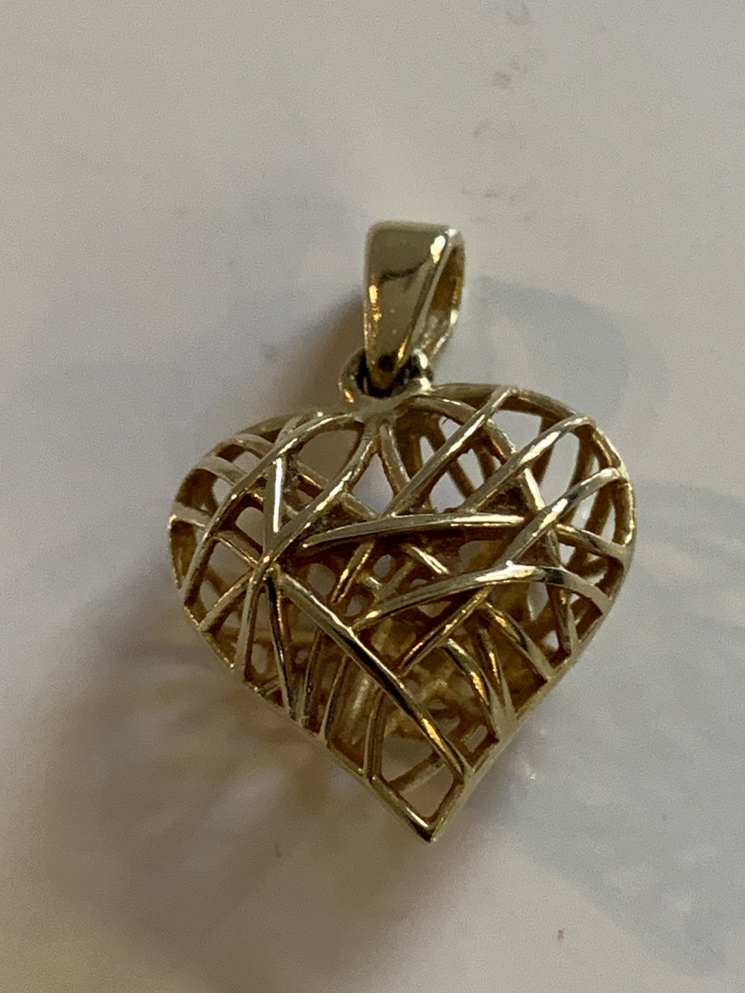 Dette hjerteformede vedhæng er lavet i anderledes stil, som om det er vævet af guldtråde. Det giver vedhænget et luftigt og levende udseende, der vil være et perfekt match med en tynd guldkæde. Designet af vedhænget, får det til at ligne et svulmende hjerte. Et flot vedhæng især til den unge pige.