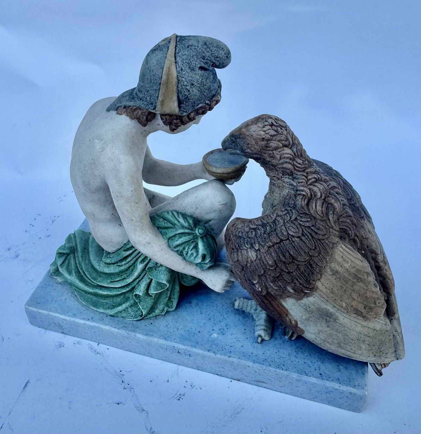 Royal Copenhagen Bisquit figur: Ganymedes med Jupiter's ørn