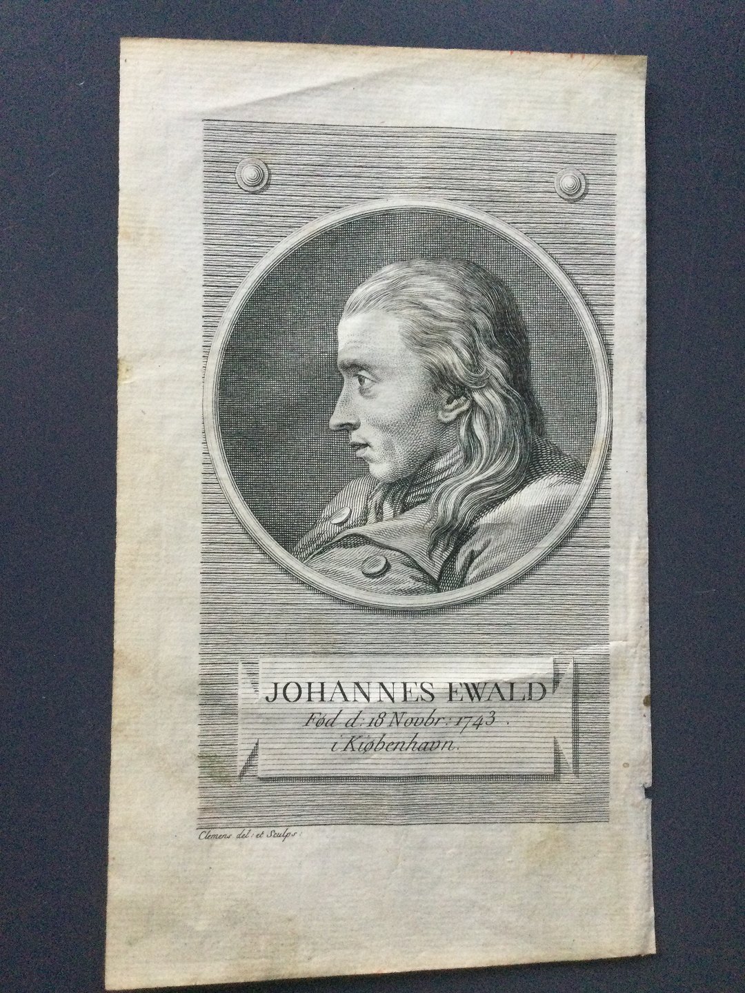 Kobberstik af J.F. Clemens - Portræt af Johannes Ewald.