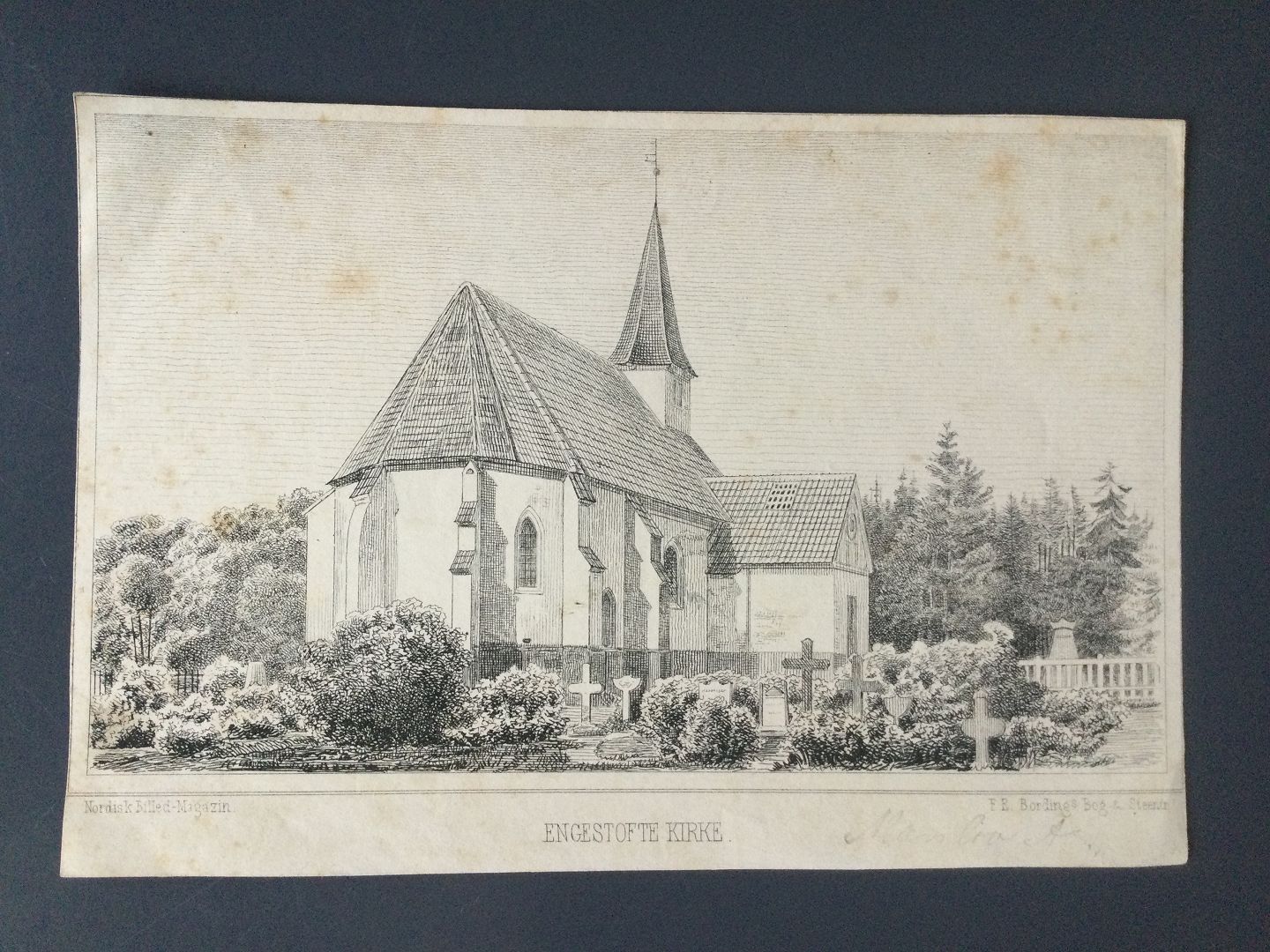 Radering af F.E. Bording - Engestofte kirke på Lolland