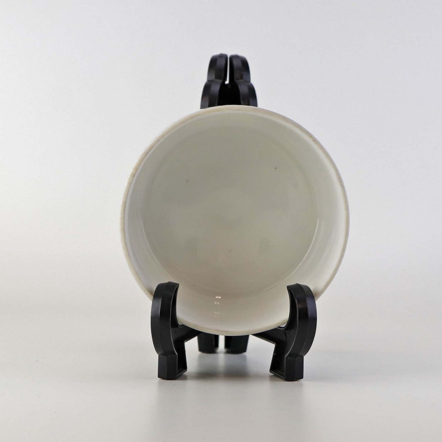 Musselmalet er af kongeligt hvidt porcelæn, dekoreret med rifler og mønster af blå ranker og blomster.