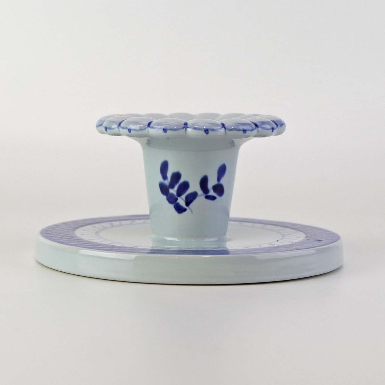 Lav lysestage i fajance fra stellet Blå Tranquebar. Nr. 11/1996