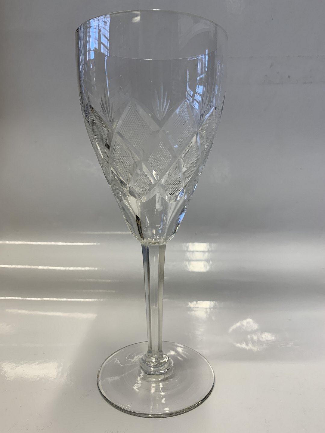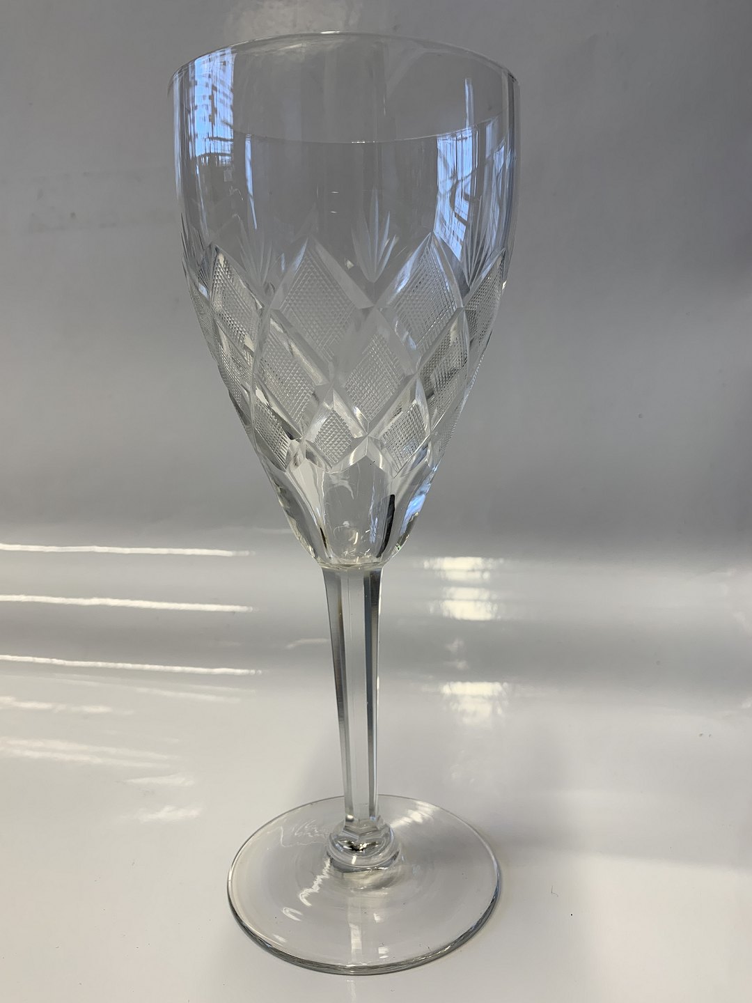 Med rudeformet felter og fane slibning, omvendt konisk facet slebet stilk.