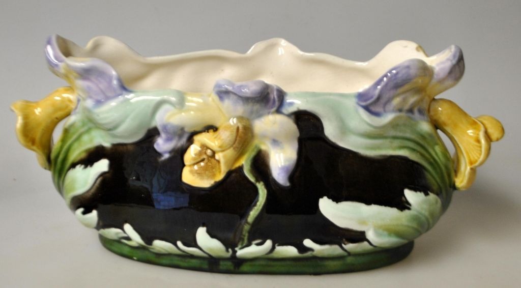 Majolica jardiniere, Tyskland, ca. 1900. Stemplet i bunden: 5853. H: 12 cm. L: 27 cm.