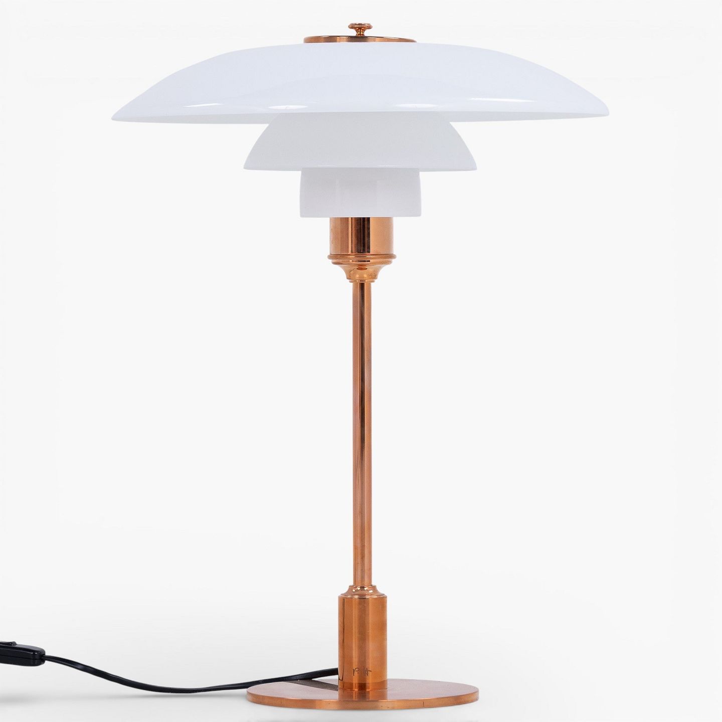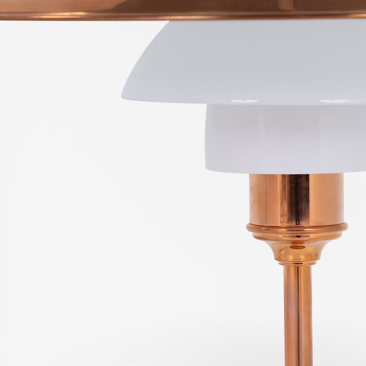 PH 3½-2½ - Bordlampe med overskærm i kobber/hvidt opalglas (begge skærme medfølger) og mellem- samt underskærm i hvidt opalglas. Jubilæumsudgave. Original kasse medfølger med certifikat.