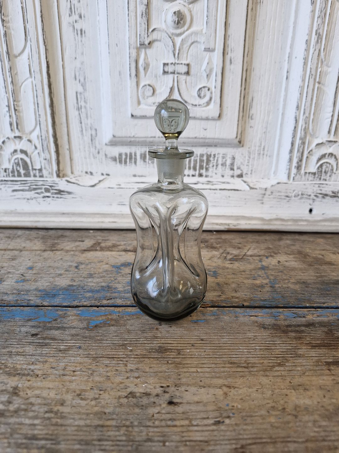 Holmegaard lille klukflaske i røgfarvet glas 16 cm.