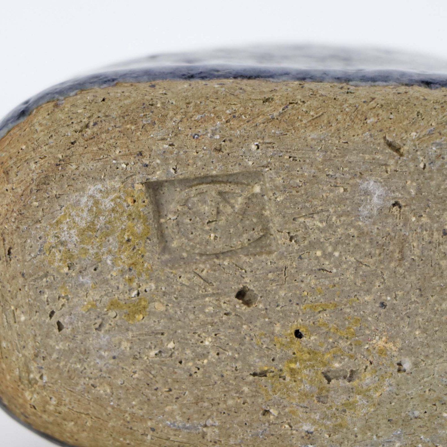 Lille flaskeformet vase i keramik med blommefarvet glasur.