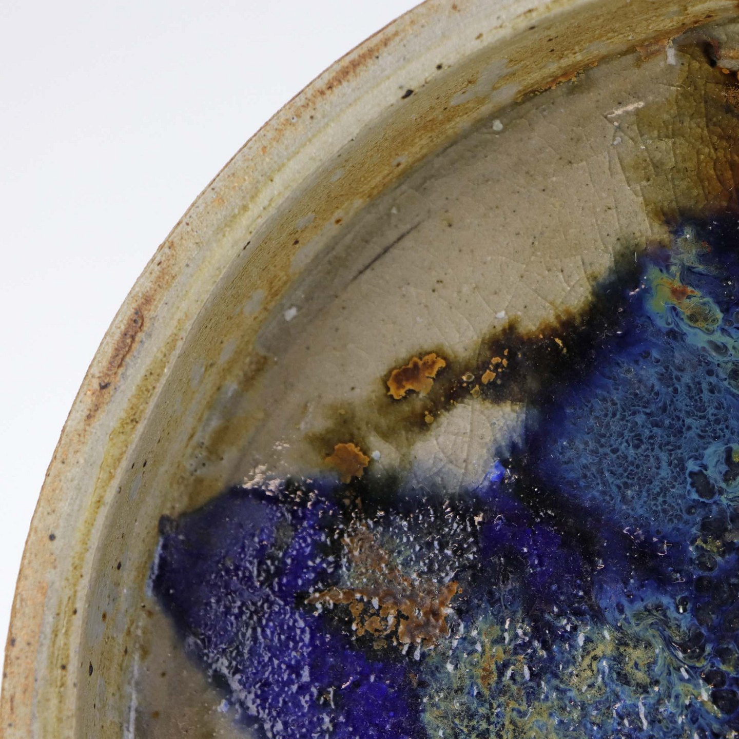 Bordskål i keramik med glasur i blå nuancer på indersiden samt uglaseret yderside.