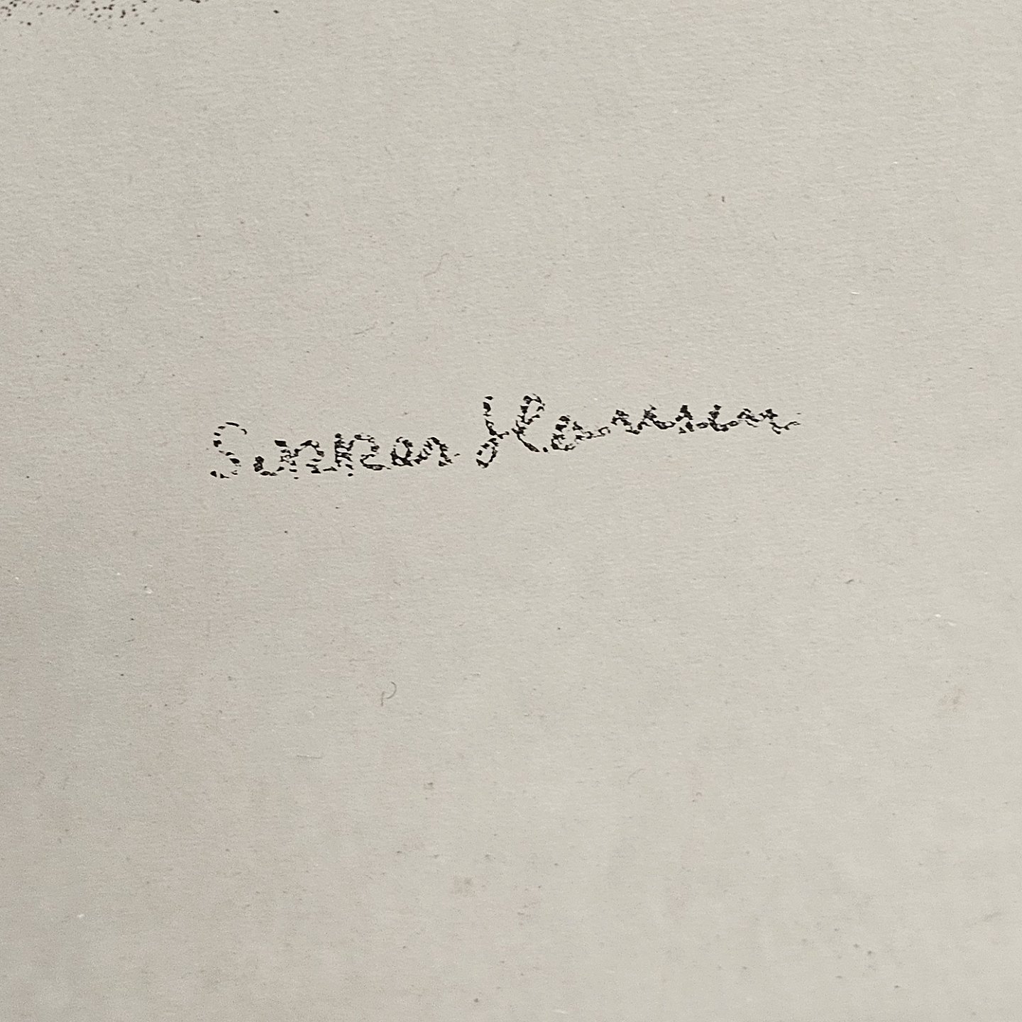 Tryk på papir med motiv af en kvinde med tre børn monteret i sort og hvid ramme