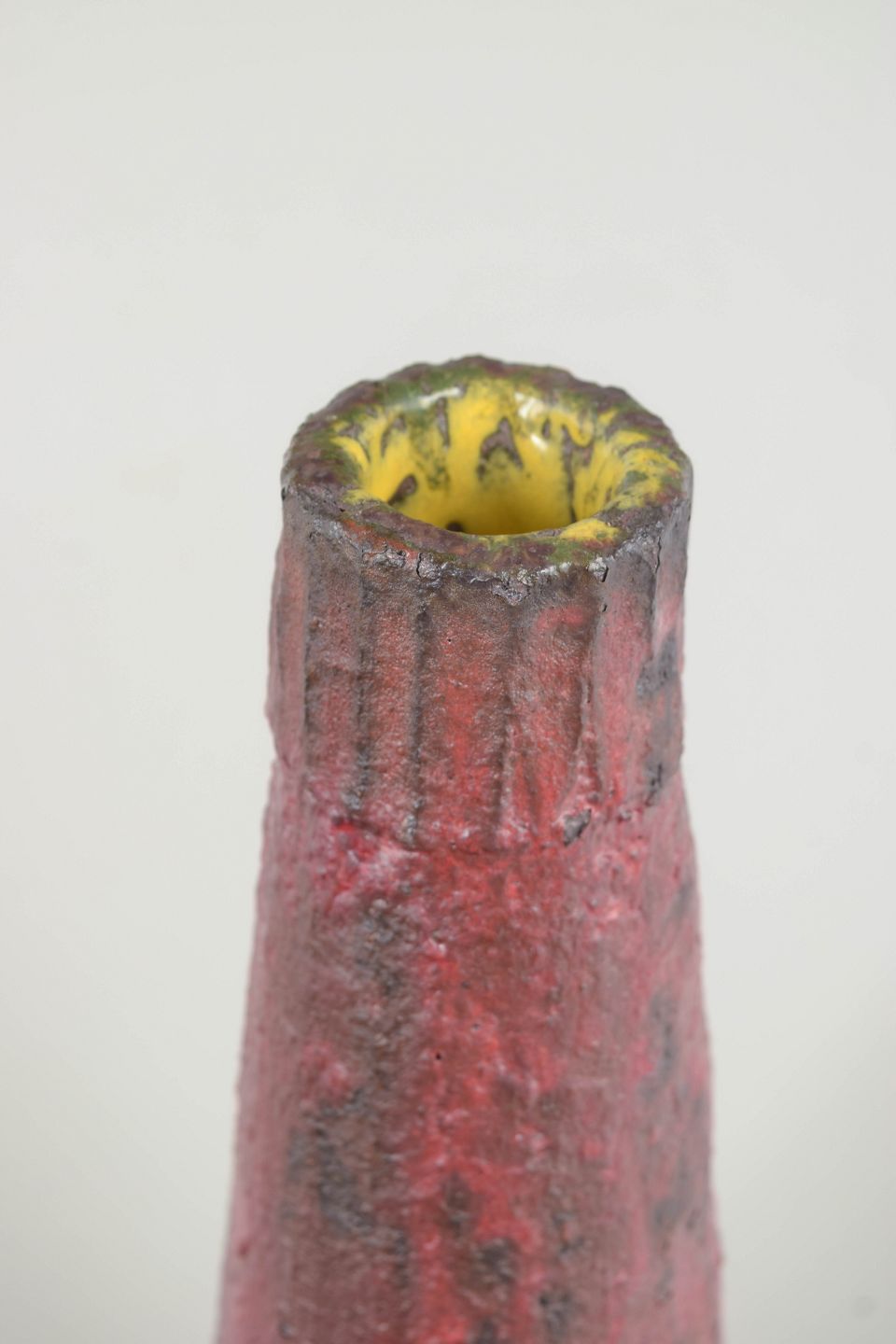 I slutningen af 1960’erne arbejdede mange europæiske studiokeramikere intensivt med nye og utraditionelle teknikker, hvor struktur, brænding og glasurens reaktion på overfladen var i fokus. Disse eksperimenter resulterede ofte i markante enkeltværker med stærk fysisk tilstedeværelse. Vaser fra perioden afspejler en tydelig bevægelse mod det mere skulpturelle og kunstnerisk frie udtryk.
