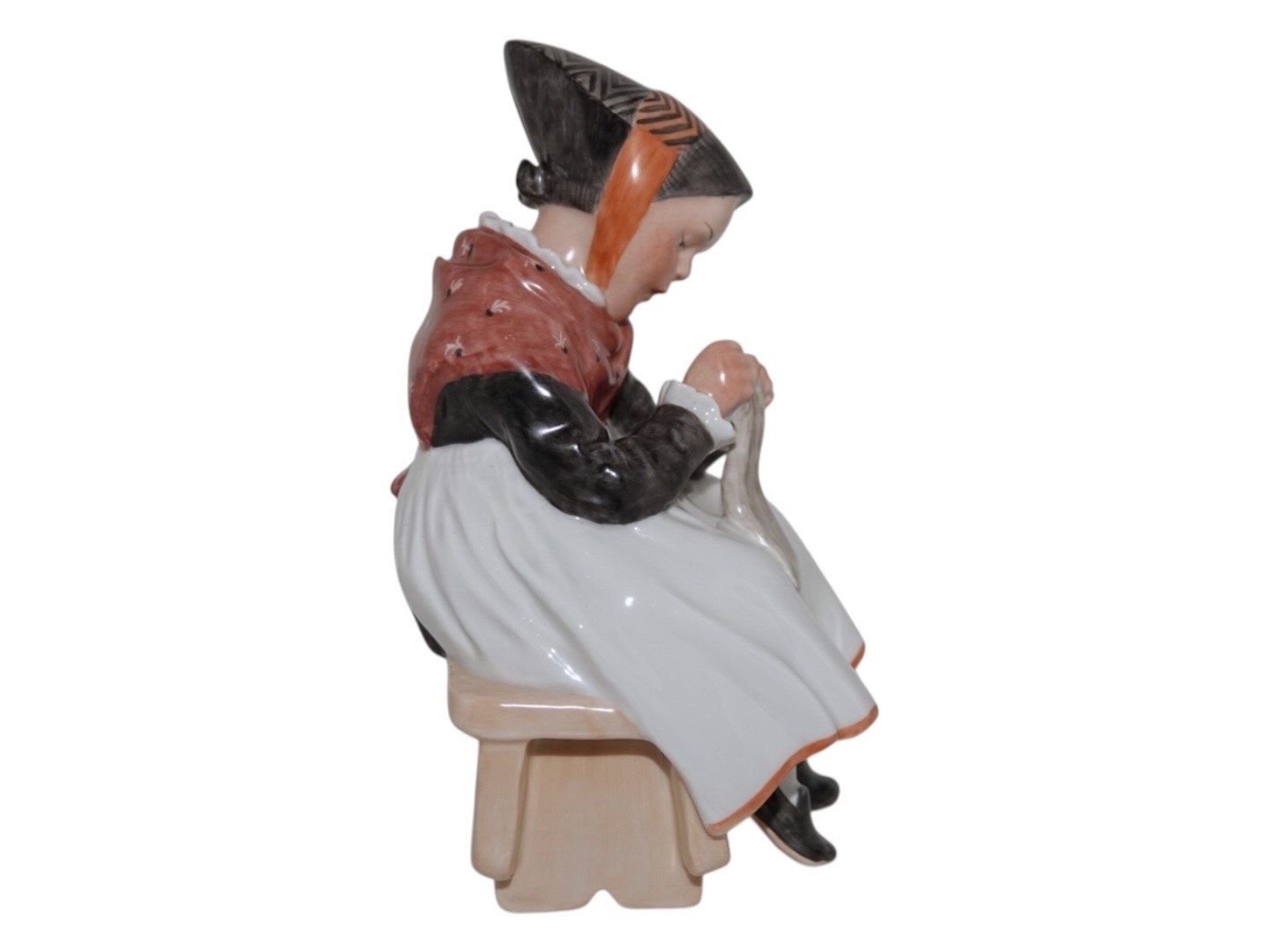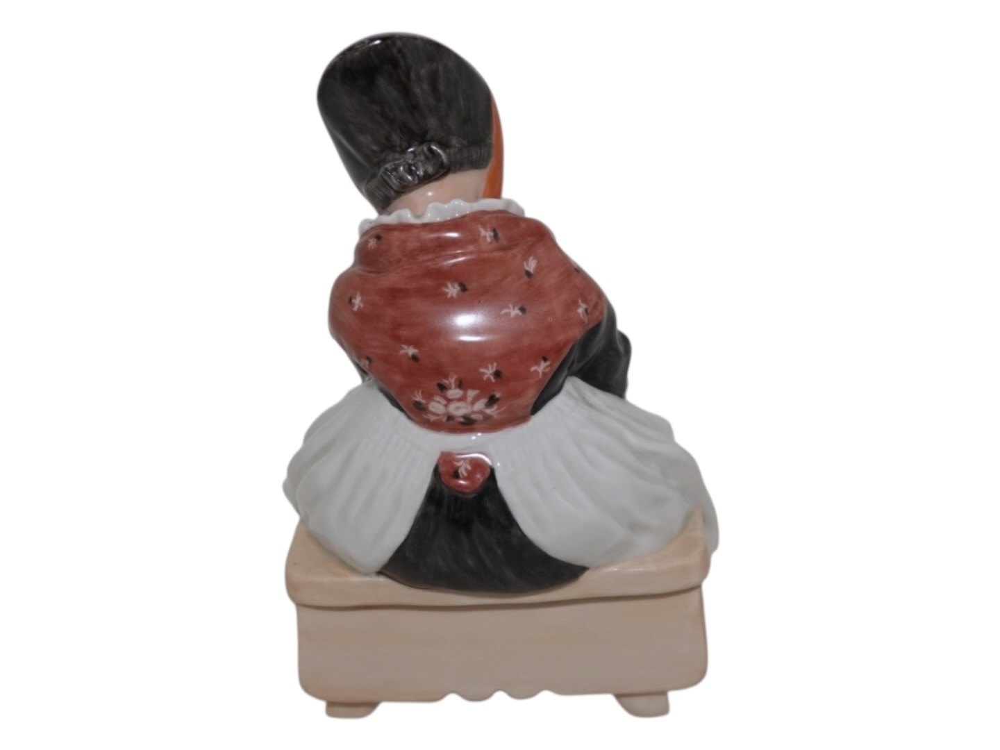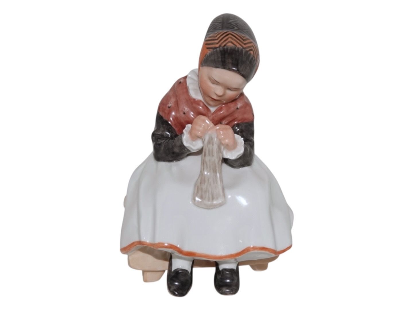 Royal Copenhagen figur, Amagerpige med overglasur dekoration.