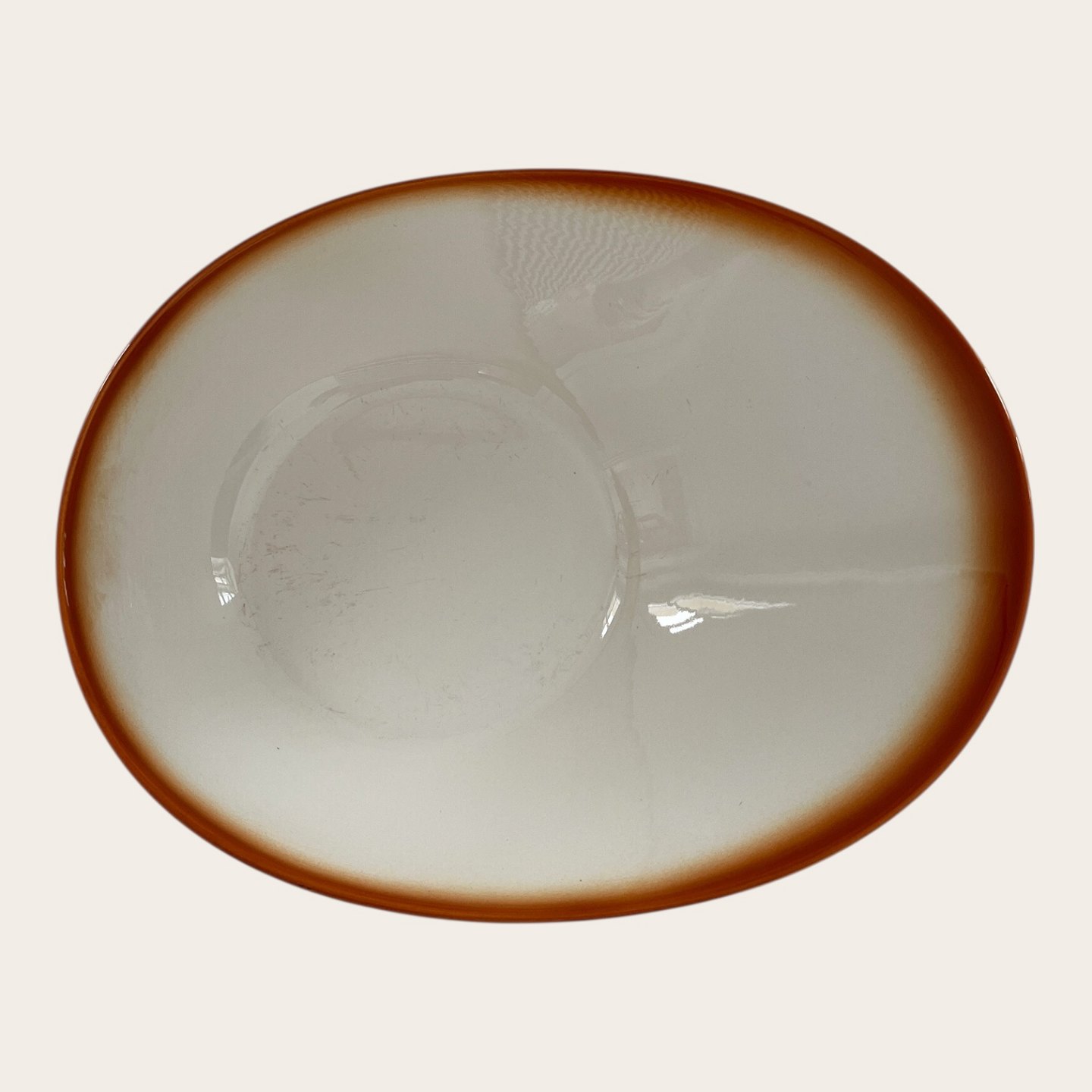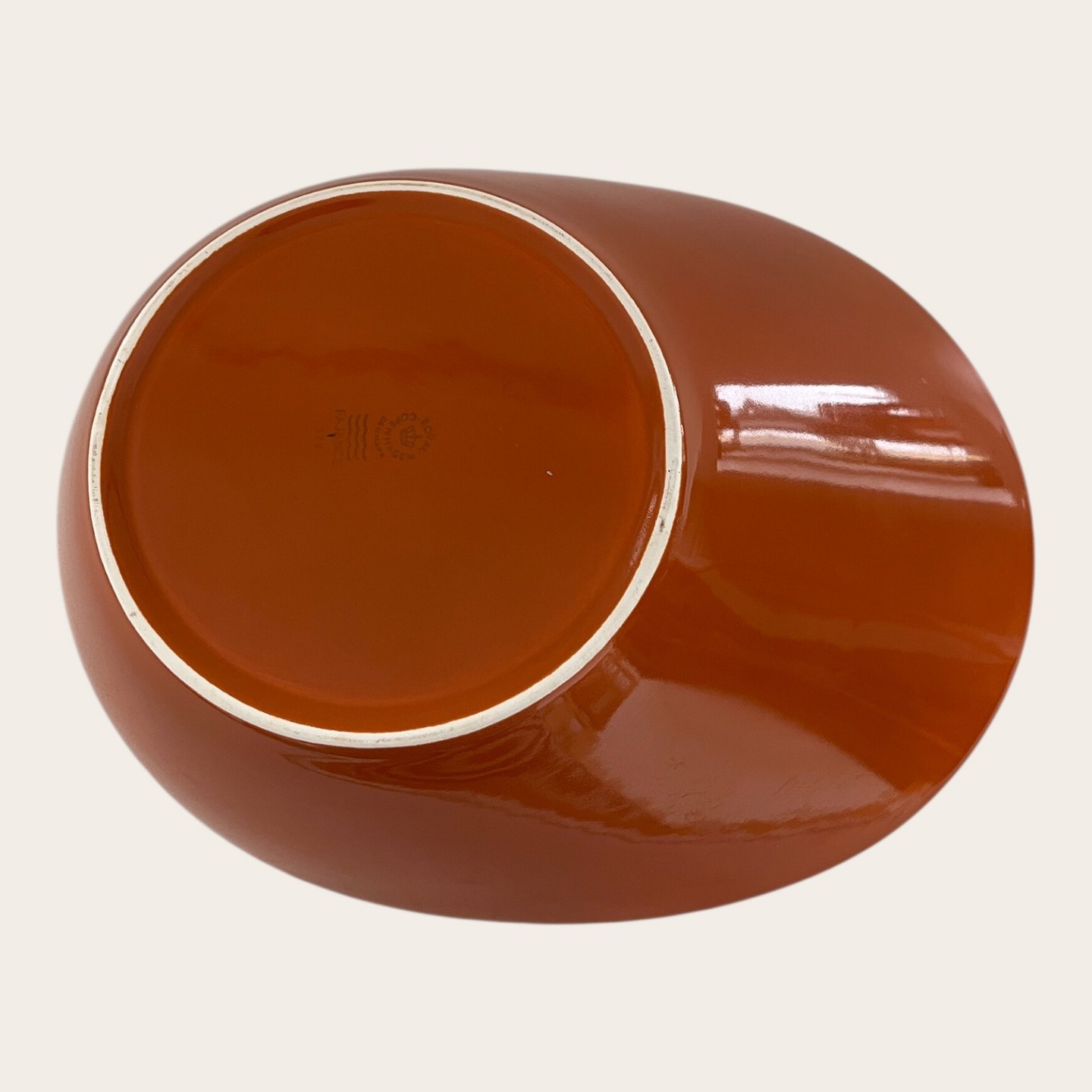 Royal Copenhagen, Aluminia, Ursula #578, Asymmetrisk skål, Brun / hvid, 1. sortering, 30,5cm lang, 24cm bred, 8cm høj, Design Ursula Munch Petersen *Med brugsspor*
