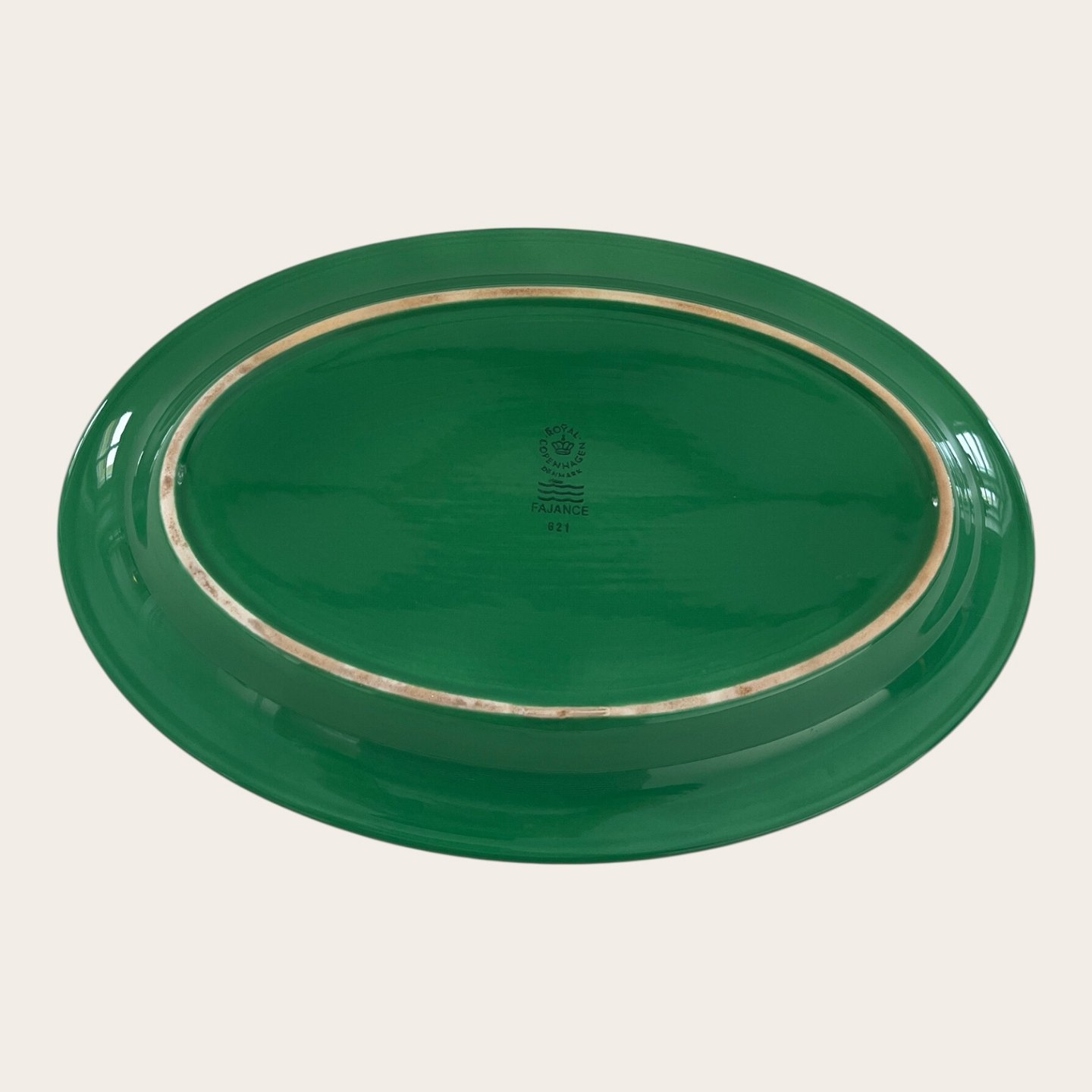Royal Copenhagen, Aluminia, Ursula, Tallerken #621, 1. sortering, Grøn, 28cm lang, 19cm bred *Pæn stand med lettere brugsspor*