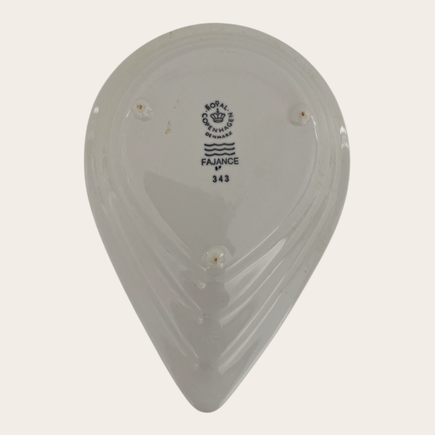 Royal Copenhagen, Aluminia, Dråbe skål / Låg til kande ( varenr. 629132) Hvid #343, 1. sortering, 15,5cm lang, 10,5cm bred, Design Ursula Munch Petersen *Pæn stand med lettere brugsspor*