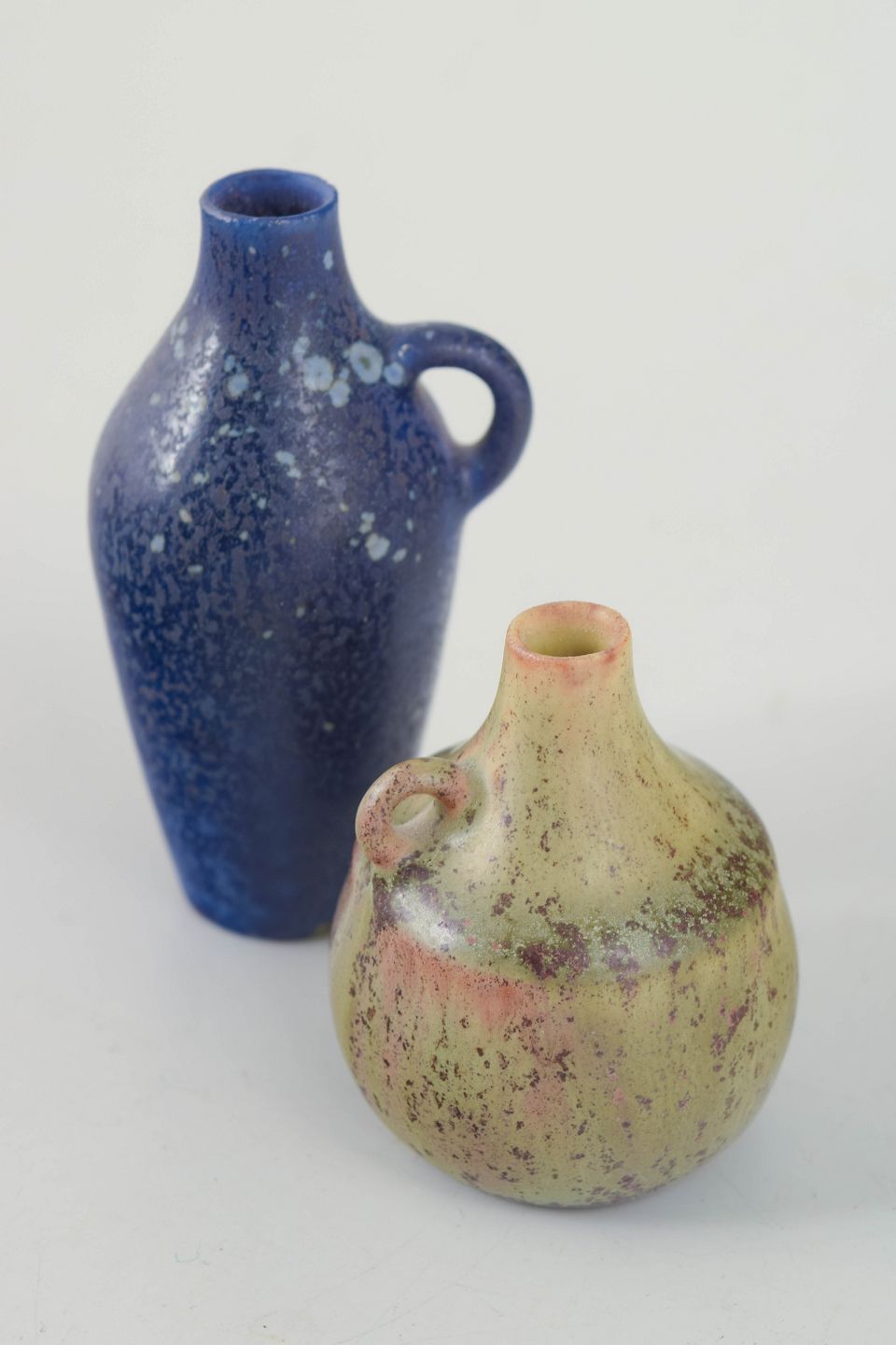 Carl-Harry Stålhane for Rörstrand, sæt af to miniature kander i drejet stentøj med karakteristiske glasurer.