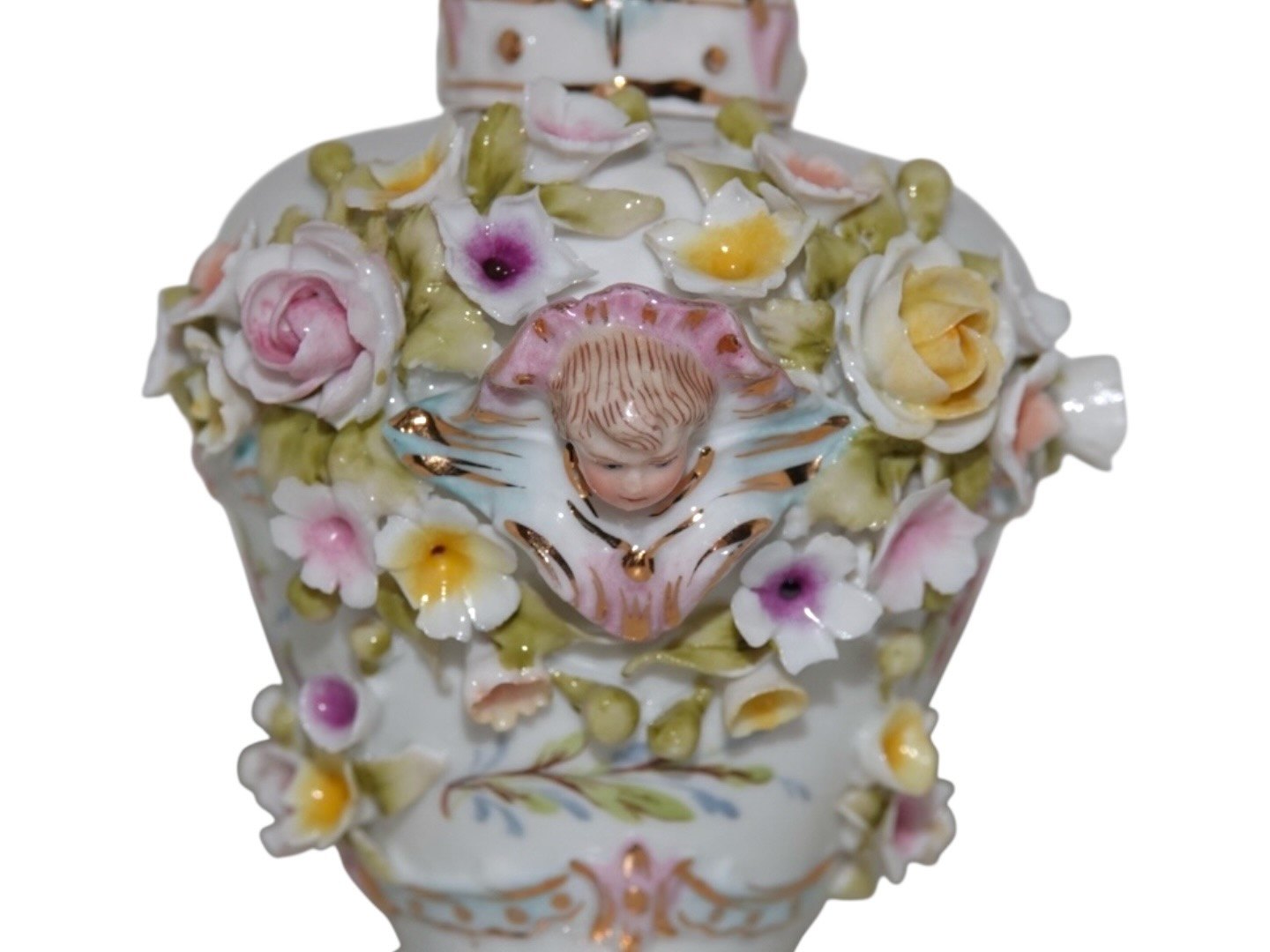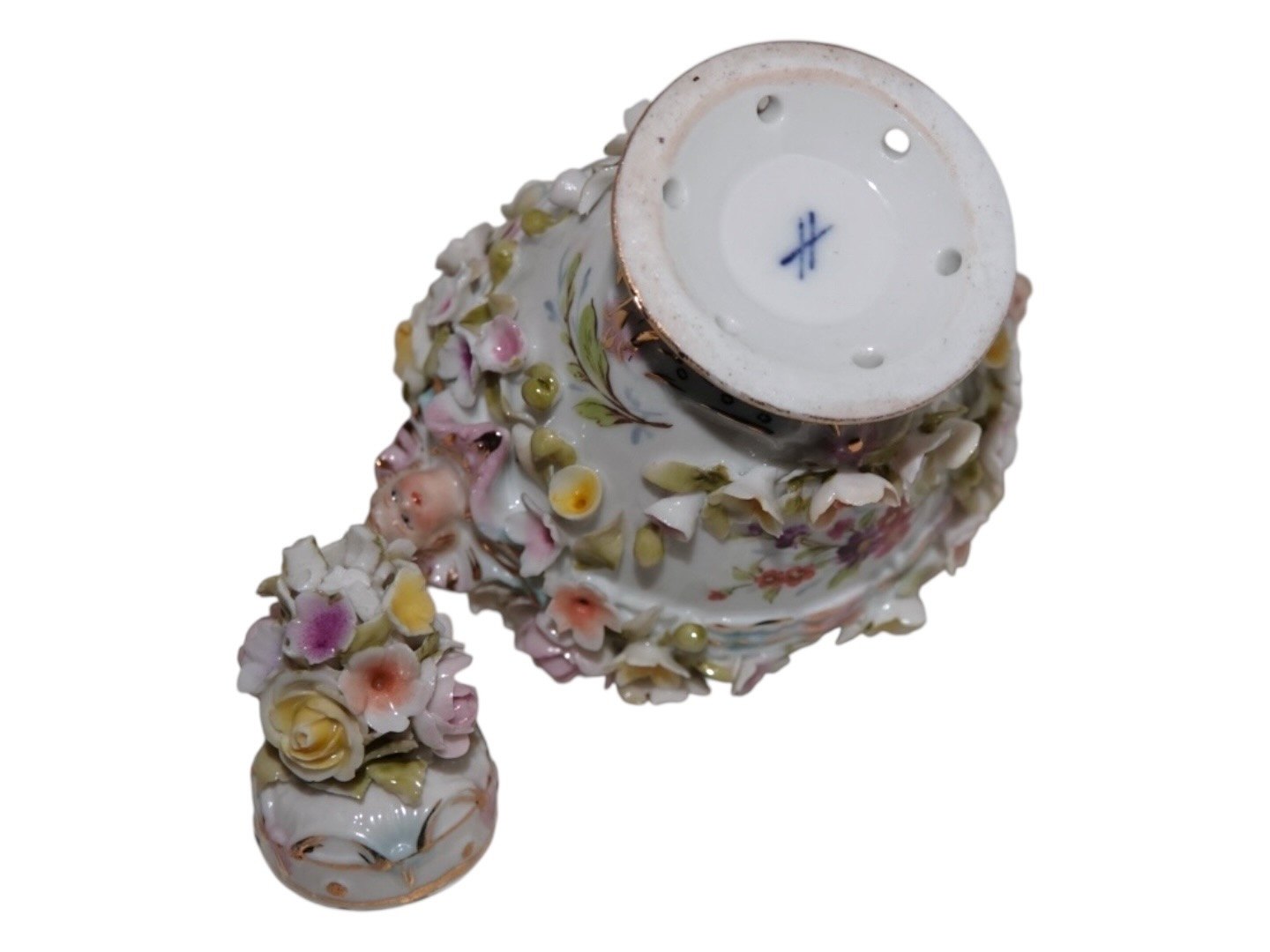 Tysk flakon i porcelæn med mange små blomster