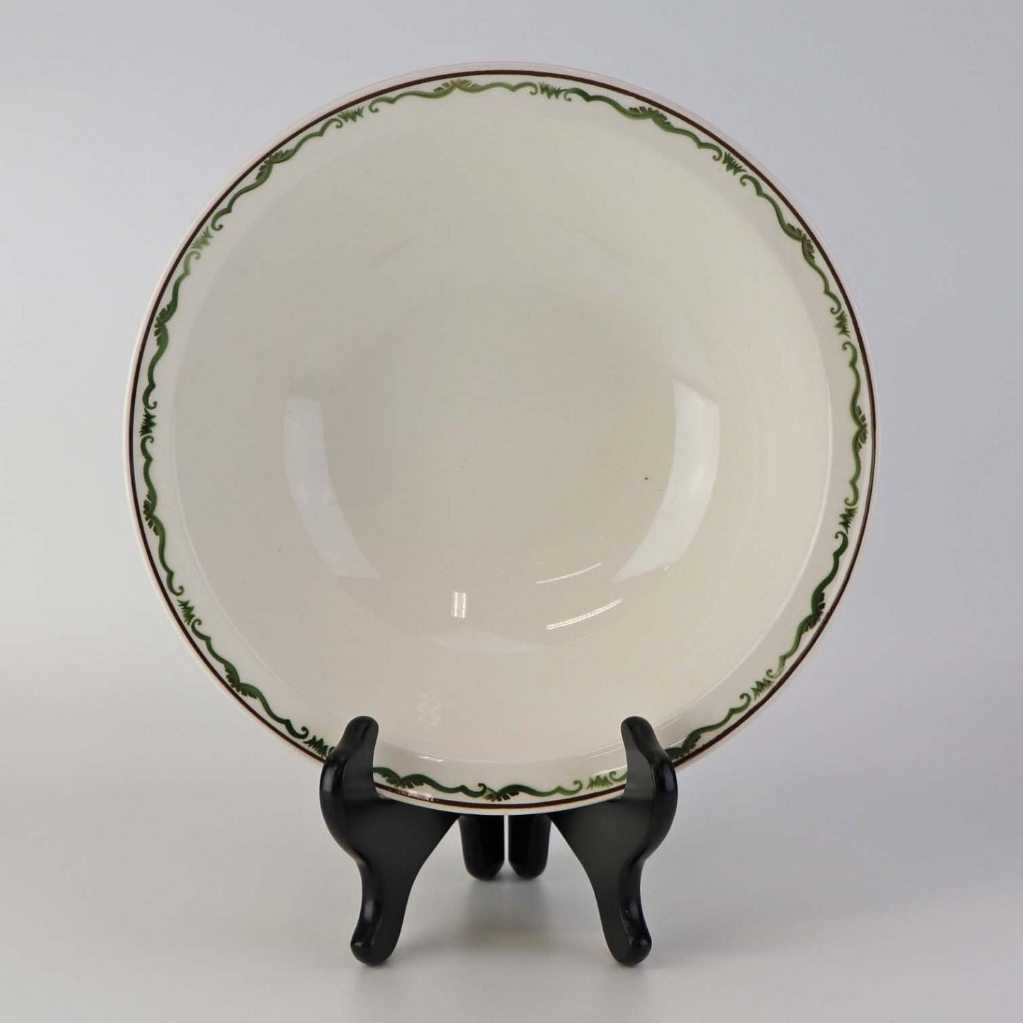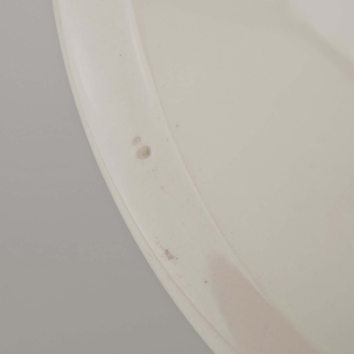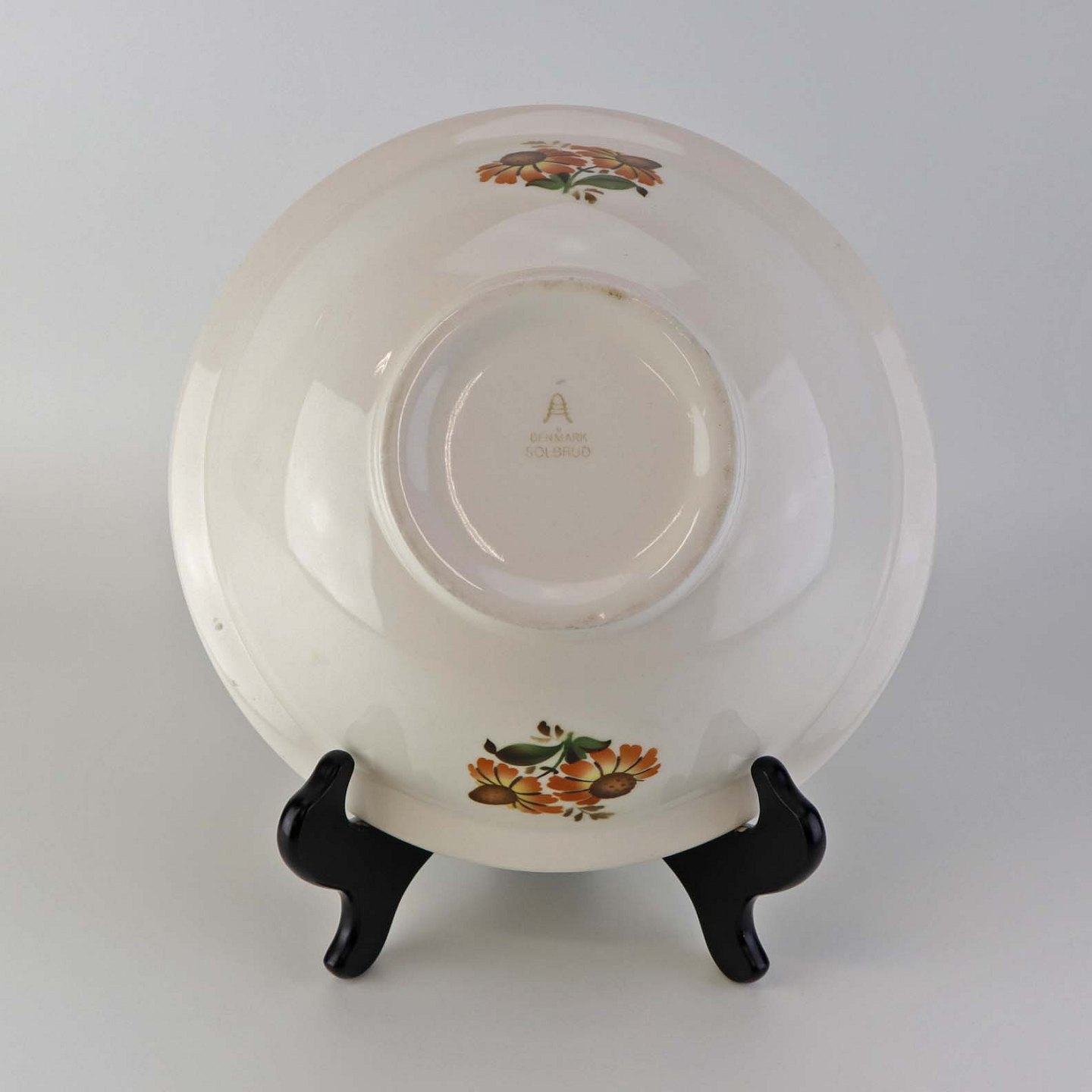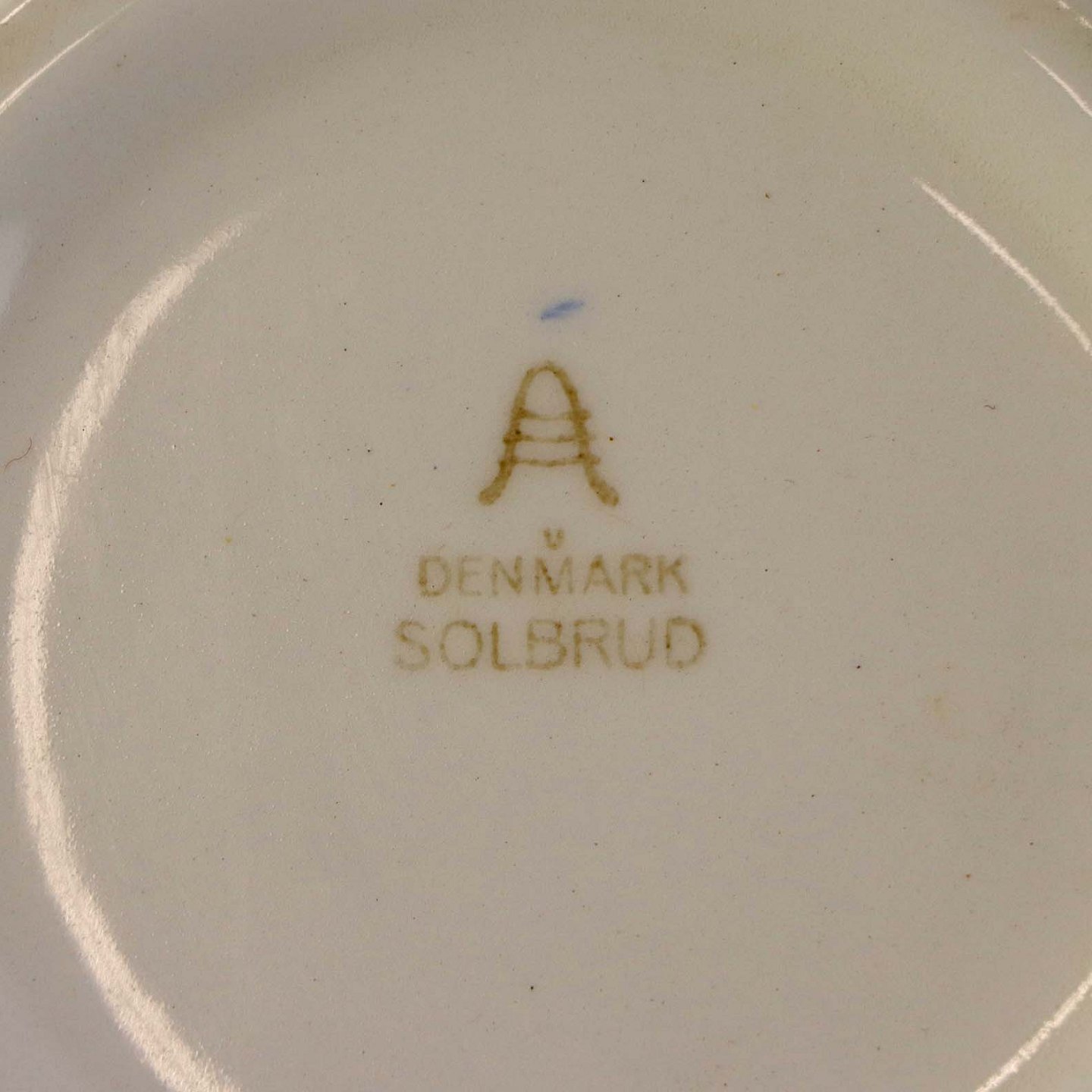Fremstår med to mindre blå pletter underglasuren samt ujævnhed i glasuren på skålens yderside.
