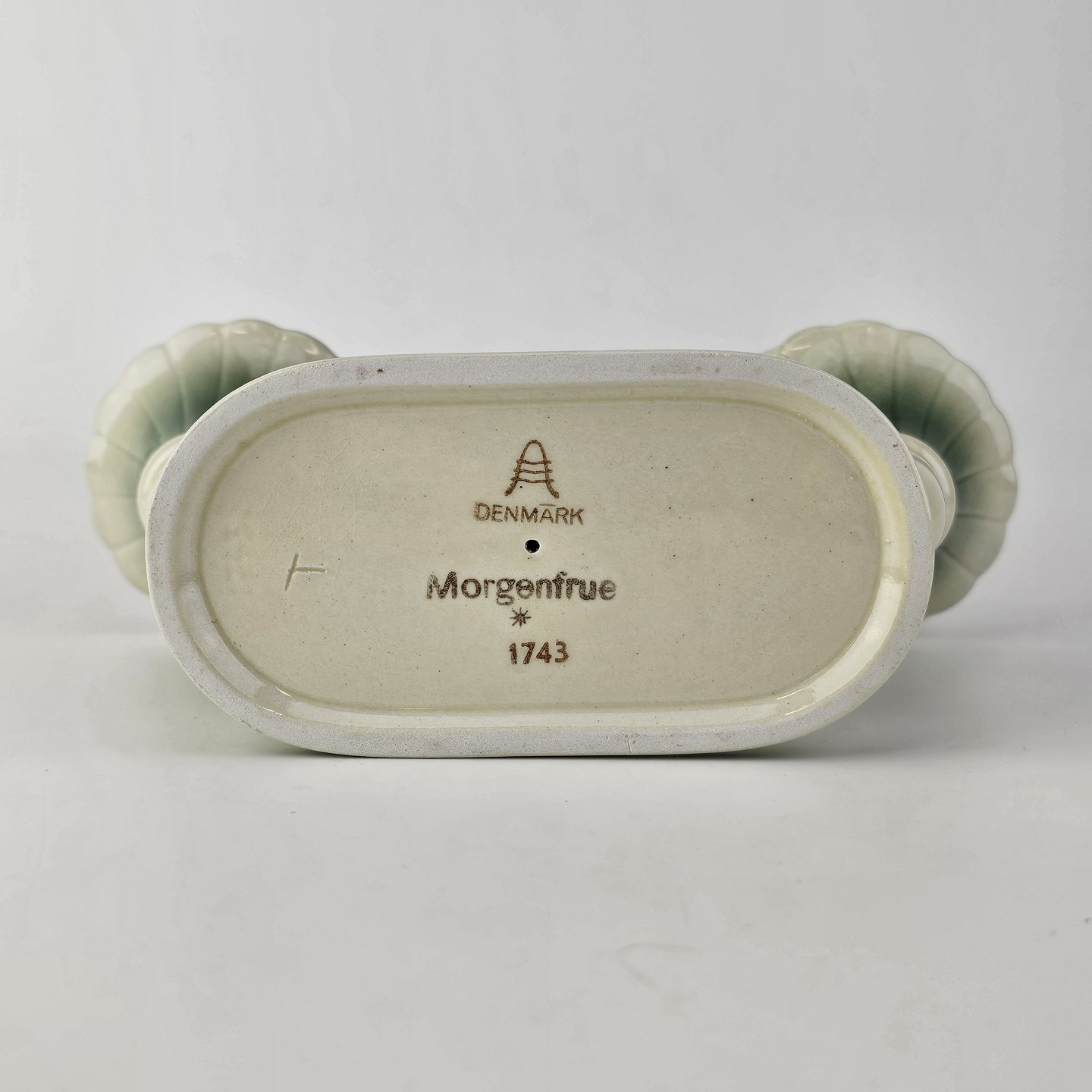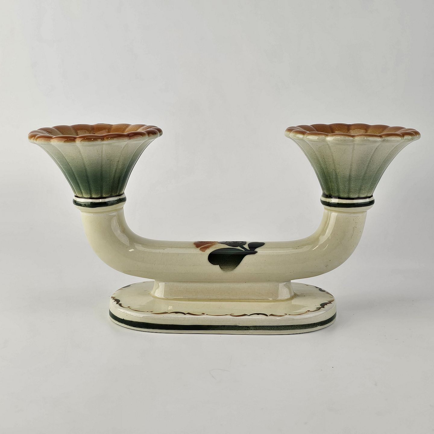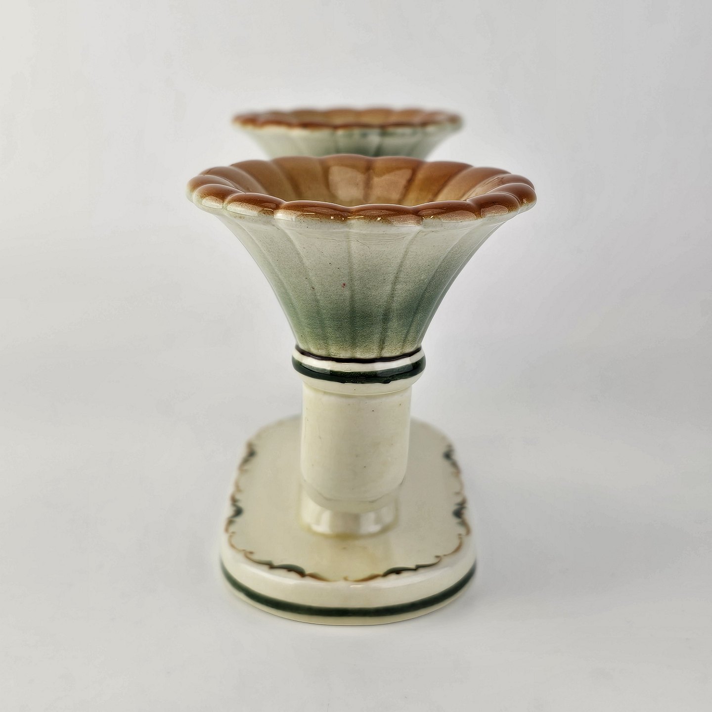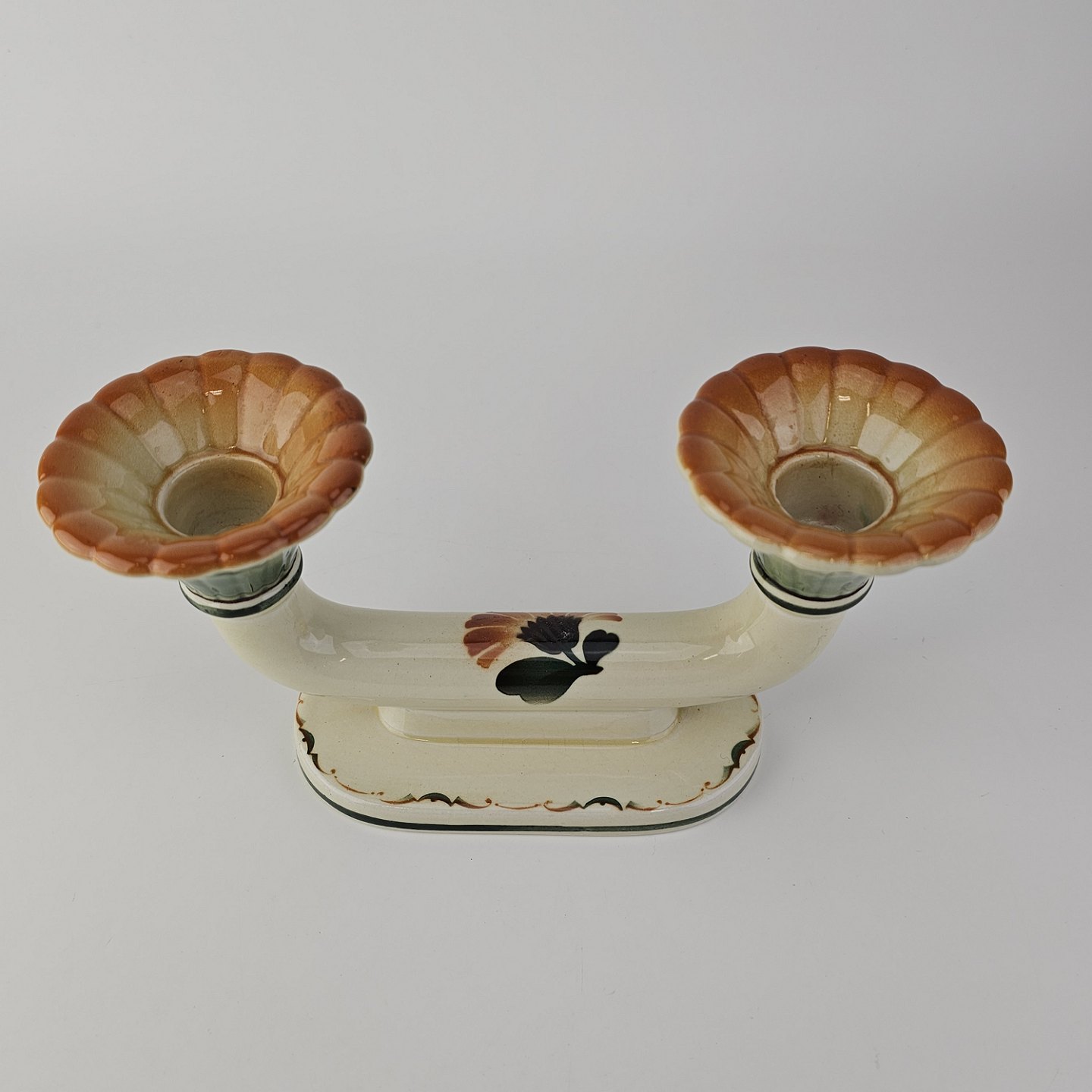 To-armet lysestage i fajance fra stellet Morgenfrue