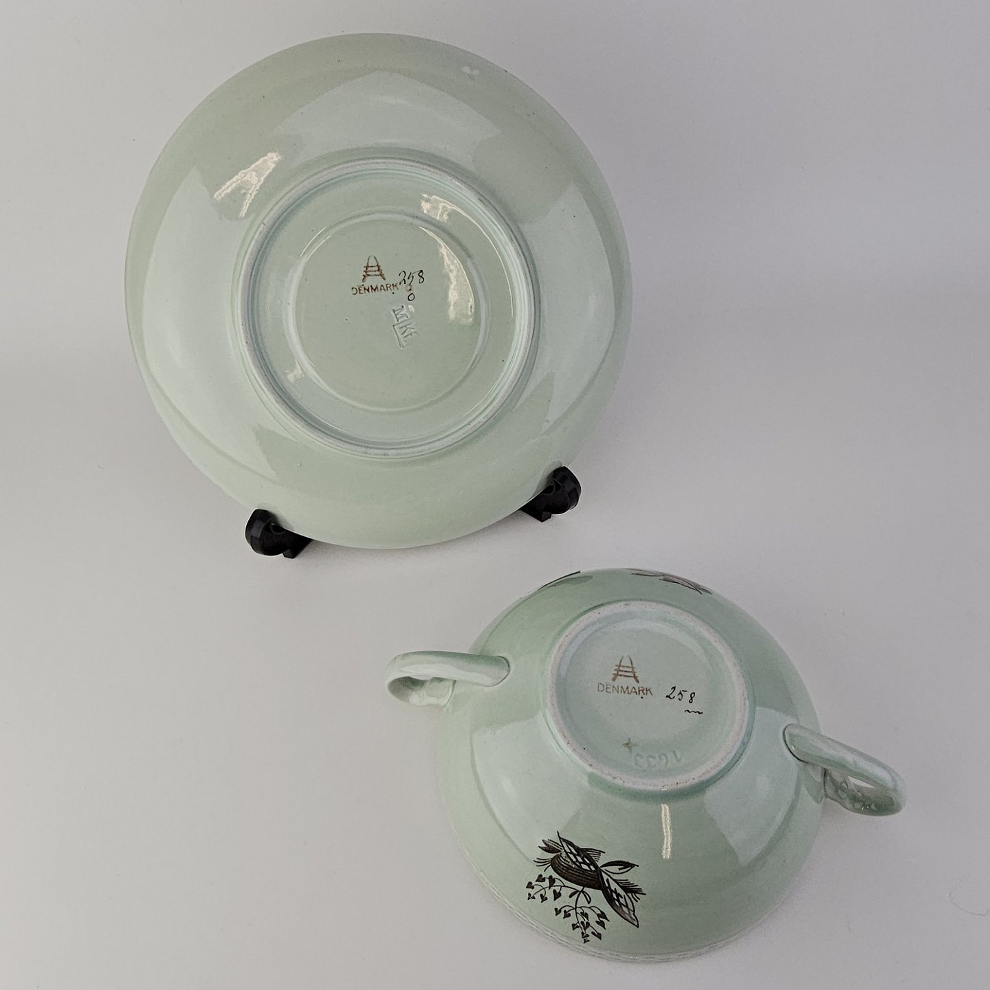 Bouillonkop med underkop i fajance fra stellet Saltholm