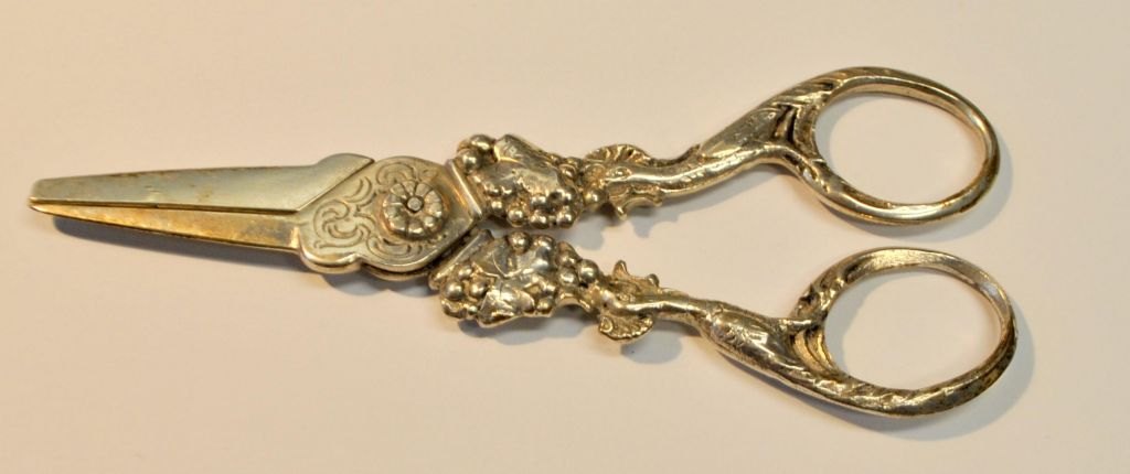 Vindrue saks i sølv, 20. årh. Stemplet.: 800 og med mestermærker. Dekoration af fugl, der spiser vindruer. L.: 15 cm. Vægt.: 74 gram.