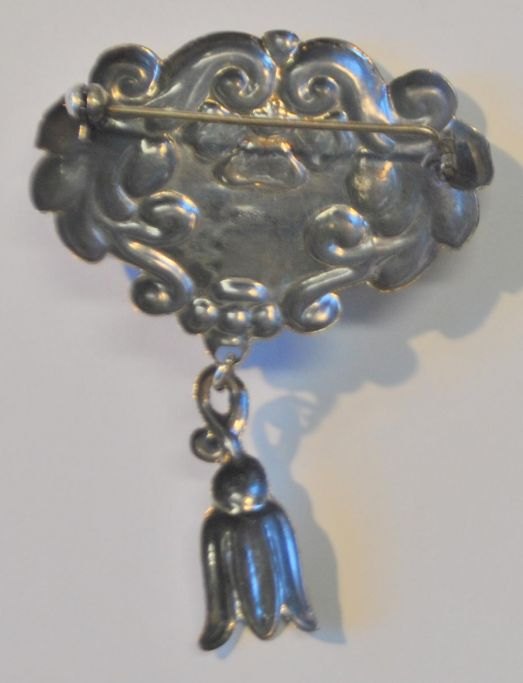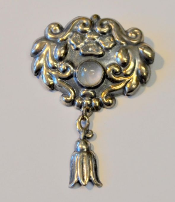 Dansk sølvsmed, 20. årh: Jugend brosche i sølv med sten.
