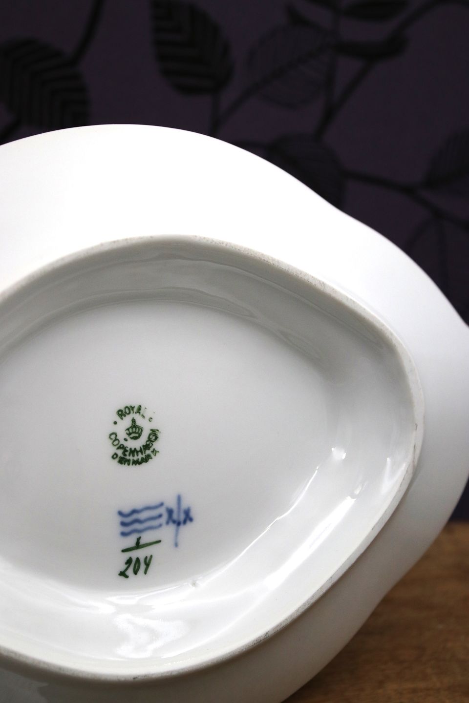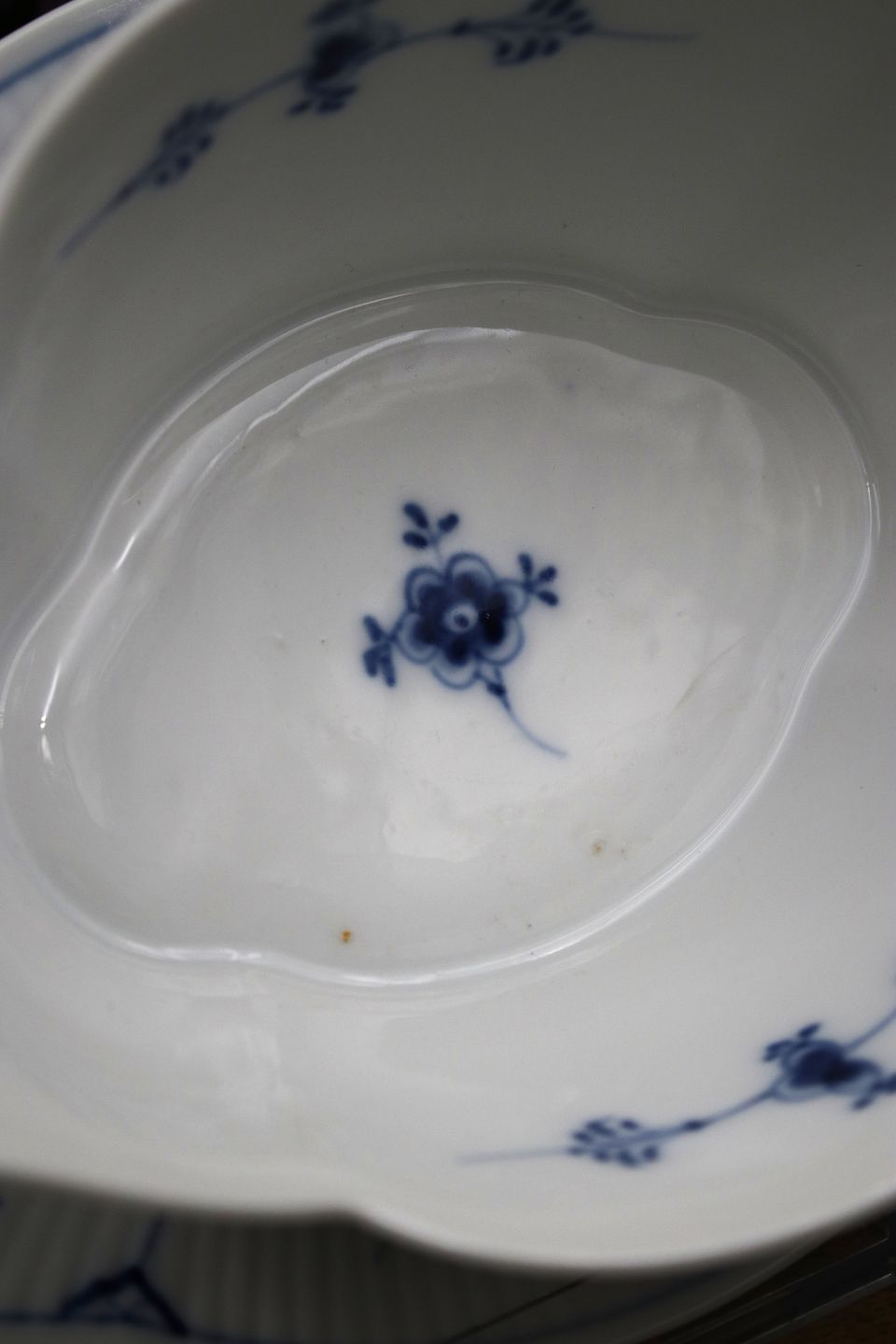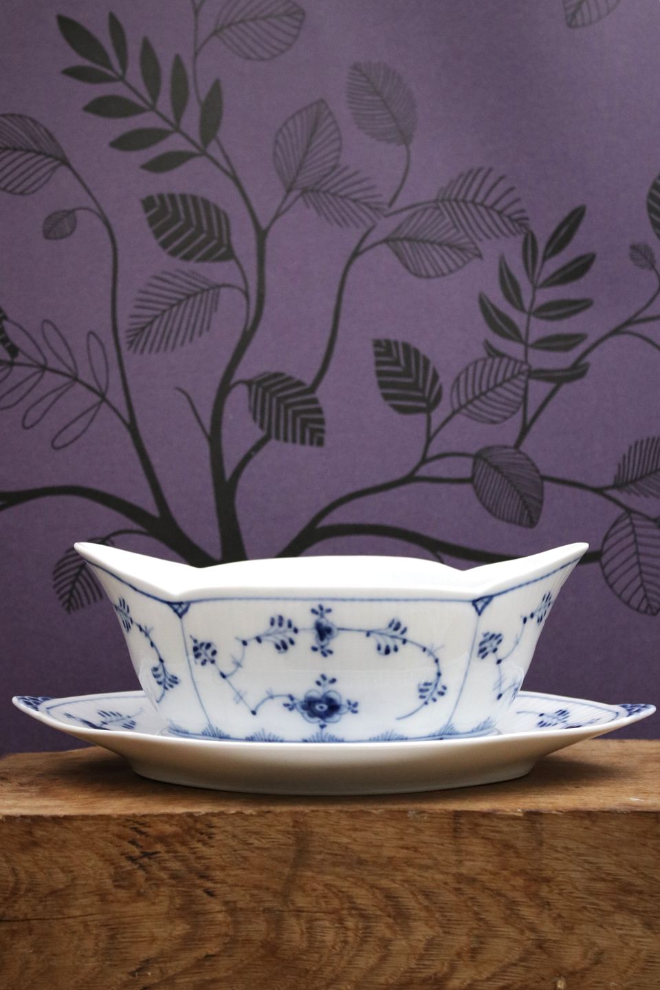 Royal Copenhagen , Musselmalet Riflet sovsekande på fast underfad.