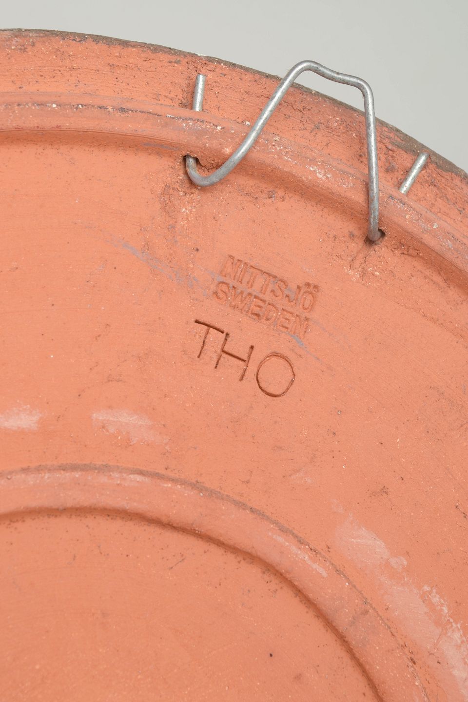 Nittsjö Keramik i Dalarna er kendt for sine robuste stentøjsarbejder og sin stærke tradition for dekorativt keramik, hvor form, glasur og motiv arbejder tæt sammen. I 1970’erne var svenske værksteder præget af et mere grafisk og fortællende udtryk med natur- og dyremotiver, og store, dekorative fade som dette blev ofte brugt både som serveringsgenstande og som vægdekoration.