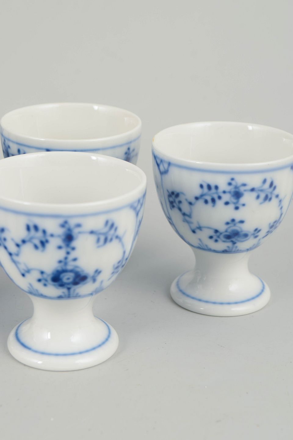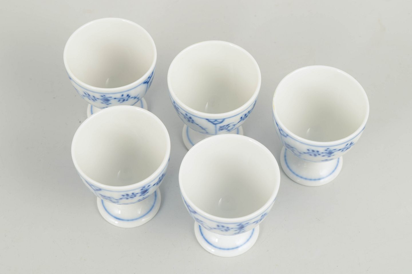 Royal Copenhagen, sæt på 5 æggebægre, Musselmalet riflet.